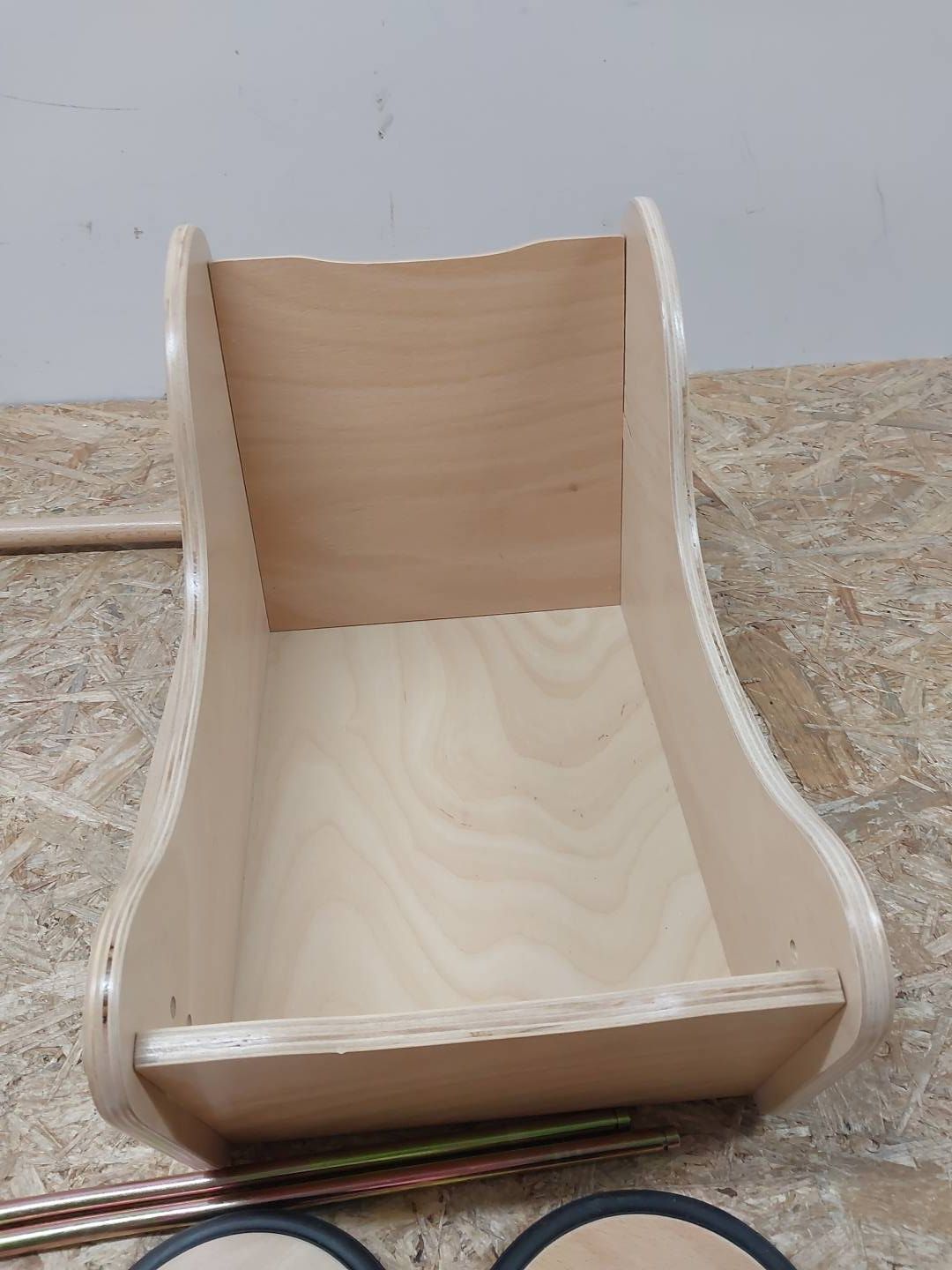 Wózek wykonany z lakierowanego drewna bukowego.
