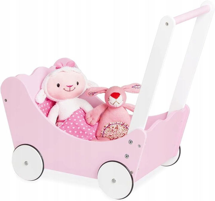 Szykowny wózek dla lalek Jasmin jest wytrzymały i stabilny oraz zapewnia dziecku bezpieczną pozycję. Wózek jest świetnym pomysłem na prezent na urodziny lub Boże Narodzenie. Wózek dla lalek ma miejsce na najważniejsze zabawki i ulubione lalki, które są potrzebne na wycieczce odkrywczej.