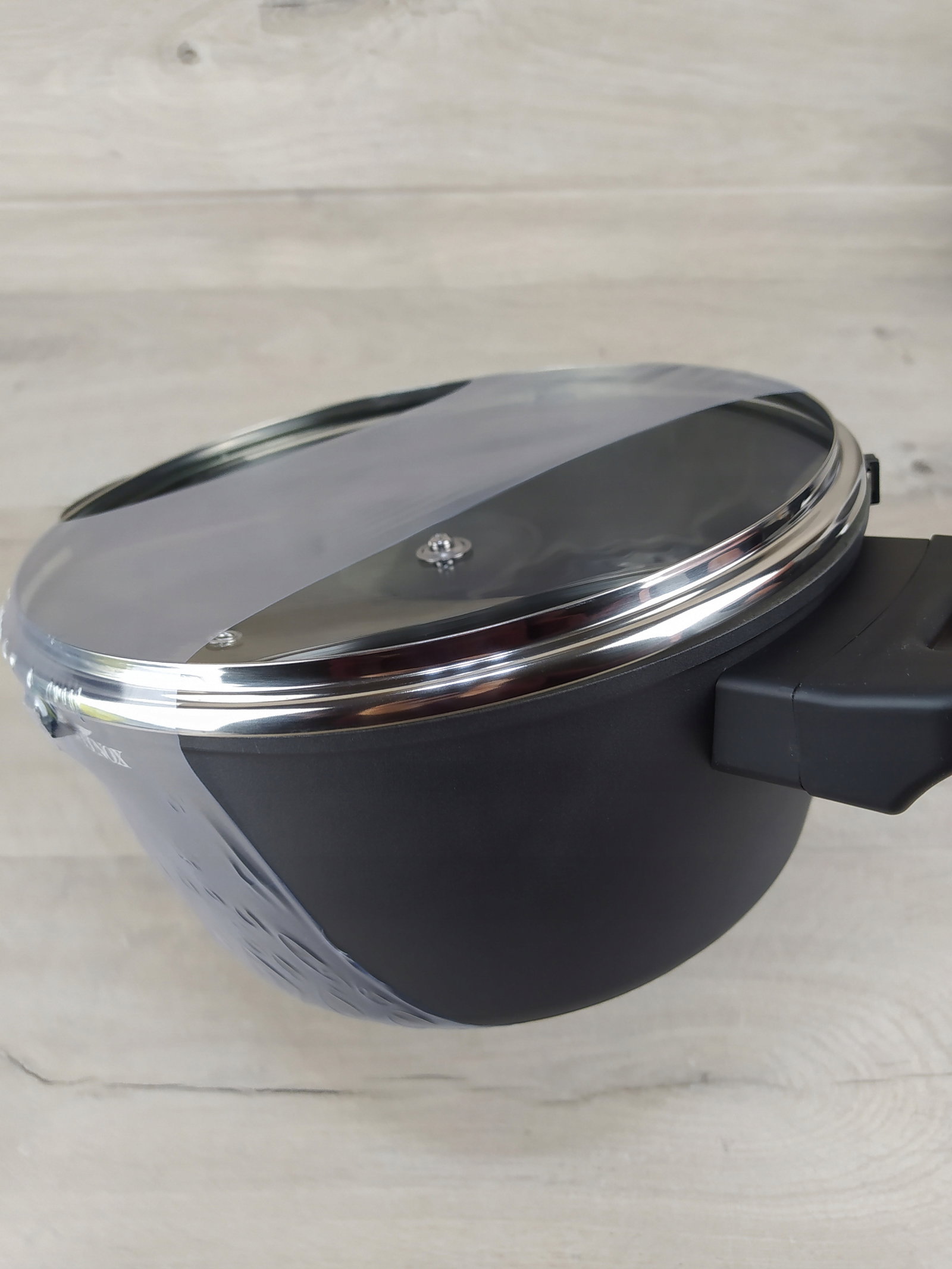 Aluminiowy garnek do gotowania ze szklaną pokrywą z serii „Power” z powłoką nieprzywierającą „Xylan” odpowiedni do indukcji
