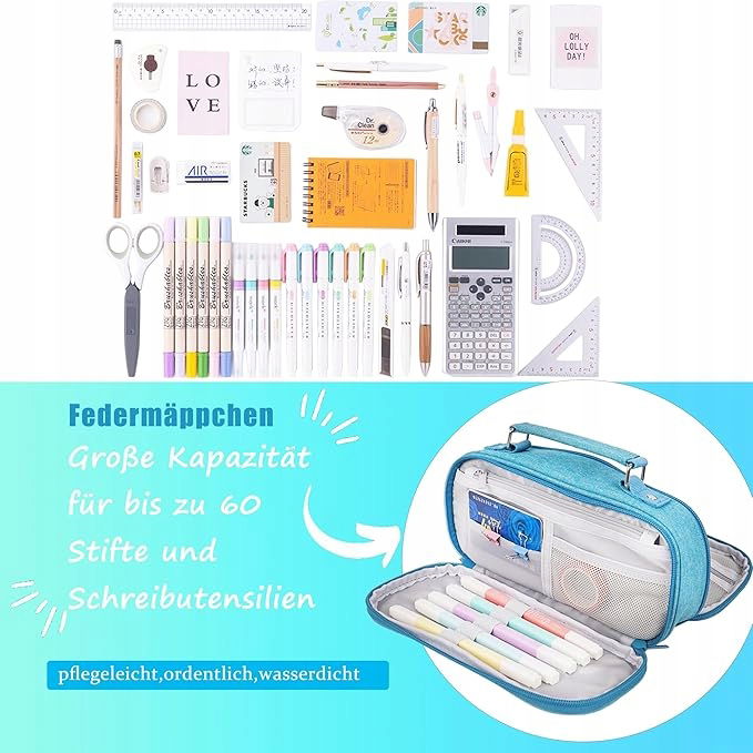 Stylowy design piórnika: kompaktowy rozmiar: 24 x 11,5 x 7 cm przy niewielkiej wadze: ok. 210 g Nie zajmuje dużo miejsca w plecaku. Nasz piórnik łączy funkcjonalność z estetyką. Nowoczesny i atrakcyjny design sprawia, że przyciąga wzrok w szkole lub biurze. Jest dostępny w różnych kolorach i wzorach, dzięki czemu możesz wyrazić swój osobisty styl.