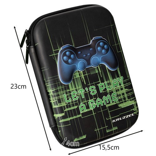 - ESTETYKA WYKONANIA - piórnik wyróżnia się pięknym, trójwymiarowym padem umieszczonym na przodzie. Pod grafiką 3D znajduje się napis "Let"s Play A Game" oraz piksele prosto ze świata gier. Kolor pada oraz grafiki przenoszą nas w wirtualny świat, co nadaje prawdziwego gamerskiego charakteru temu piórnikowi. Taki design z pewnością przypadnie do gustu dzieciom i młodzieży, którzy uwielbiają wirtualną rzeczywistość.