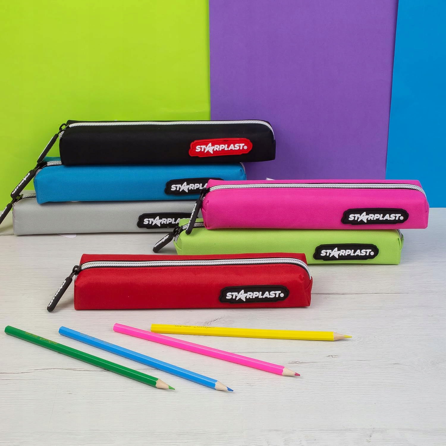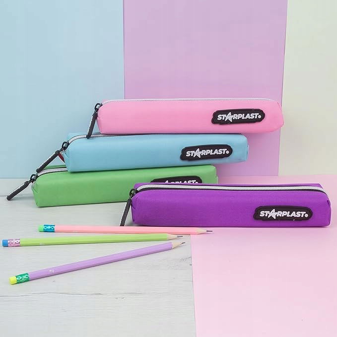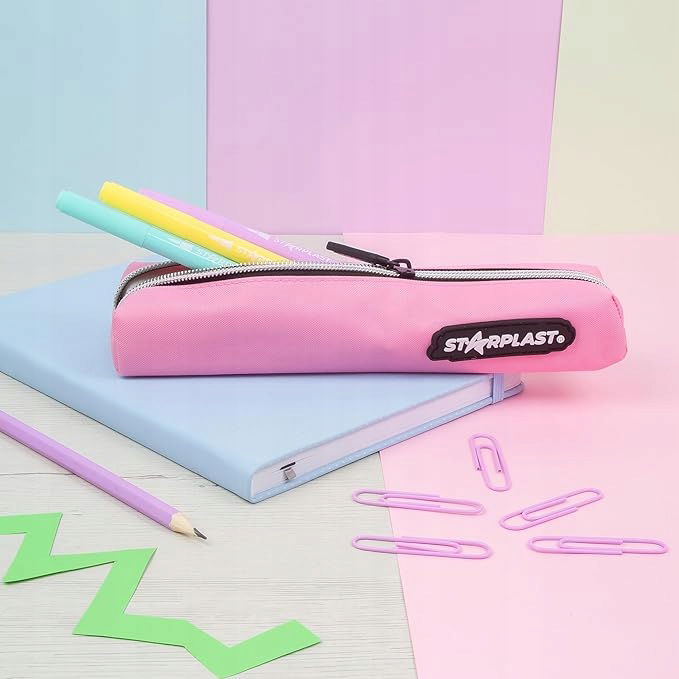 Prosta i smukła konstrukcja”: piórnik z jednym zamkiem błyskawicznym firmy Starplast charakteryzuje się smukłą i nieskomplikowaną konstrukcją. Jego minimalistyczny wygląd sprawia, że pasuje do każdego gustu i wieku.