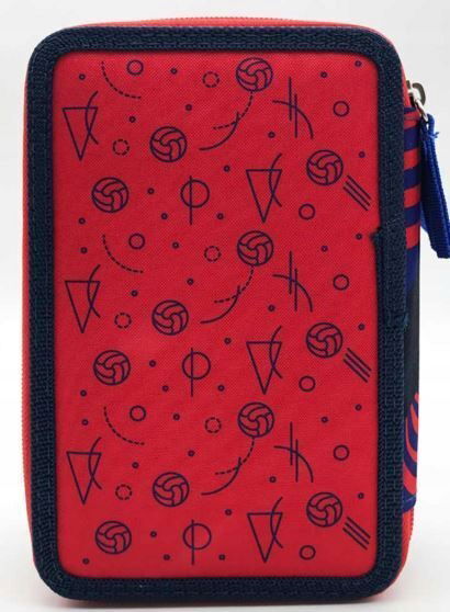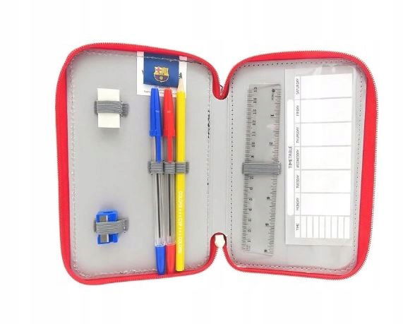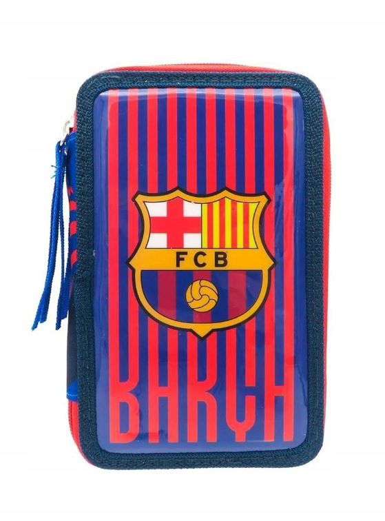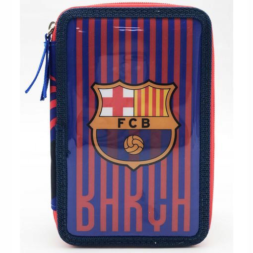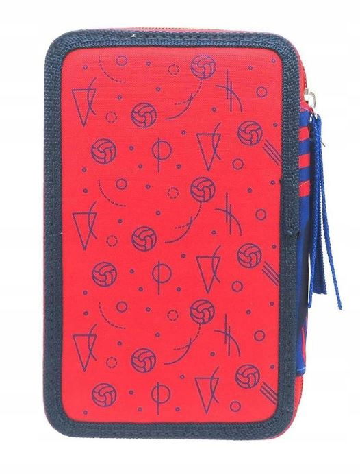Piórnik szkolny FC Barcelona z wyposażeniem dla chłopca rozkładany potrójny