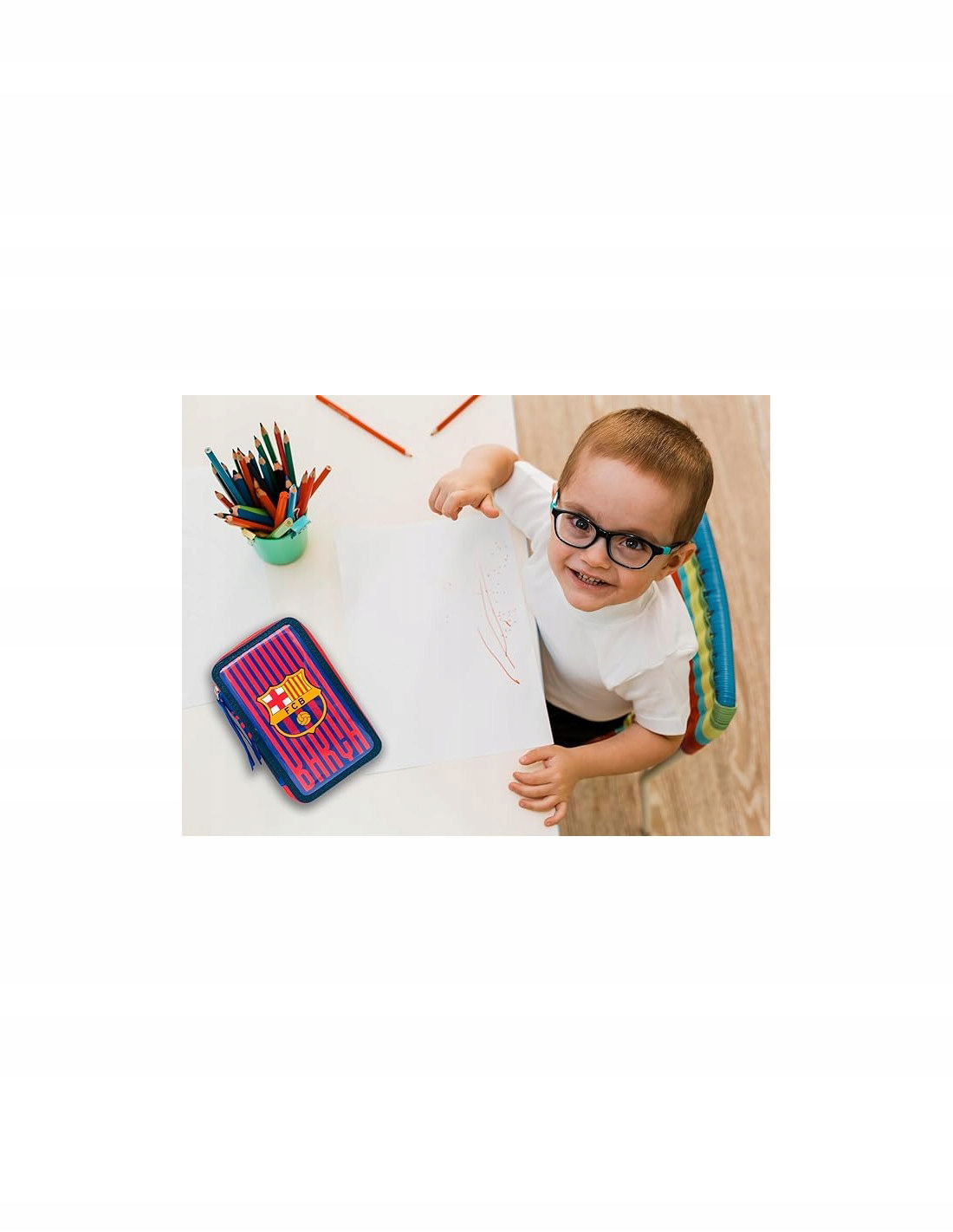 ⚽️Ten licencjonowany piórnik FC Barcelona to nie tylko praktyczny przybornik szkolny, ale też świetny sposób na wyrażenie pasji do ulubionej drużyny. Wykonany z trwałego poliestru, z charakterystycznym herbem i barwami klubu, będzie niezastąpionym towarzyszem w szkolnej ławce.