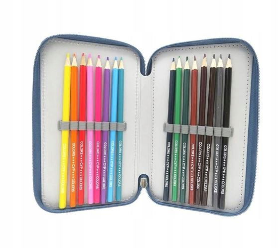 - Wyposażenie: 39 elementów: 16 kredek, 16 markerów, 2 długopisy, 1 ołówek, 1 gumka, 1 temperówka, 1 linijka i 1 plan lekcji.