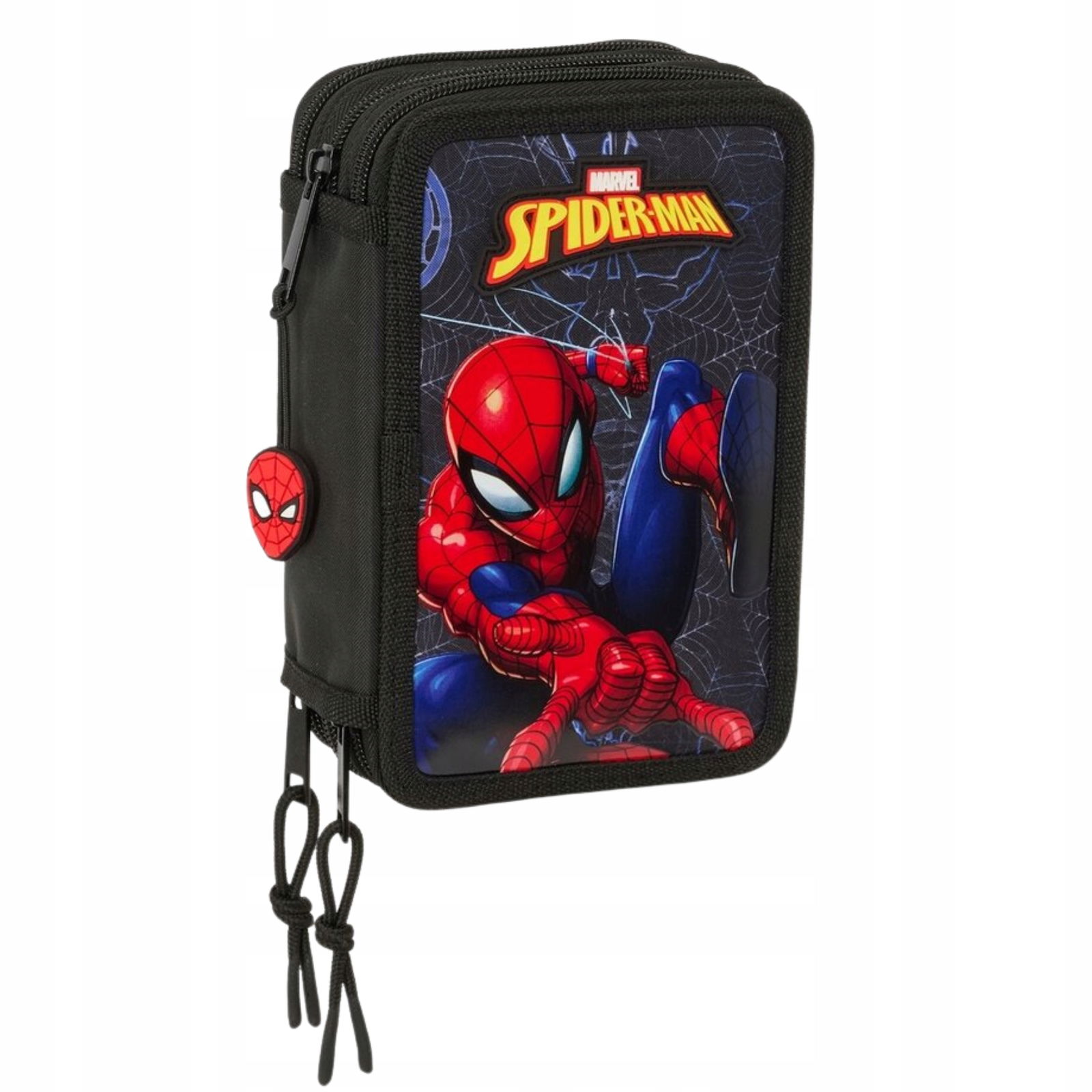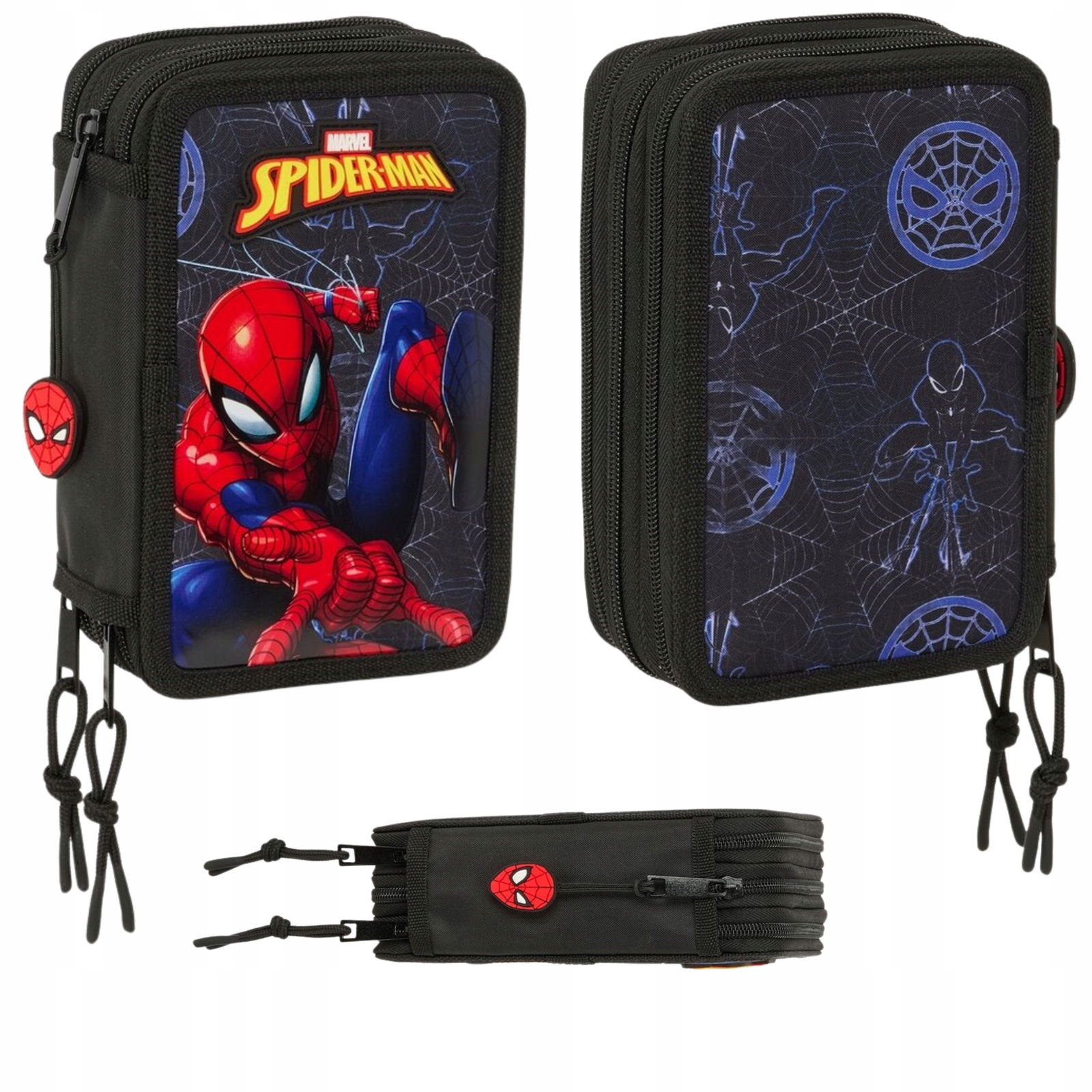 Piórnik szkolny Spiderman z wyposażeniem dla chłopca rozkładany potrójny