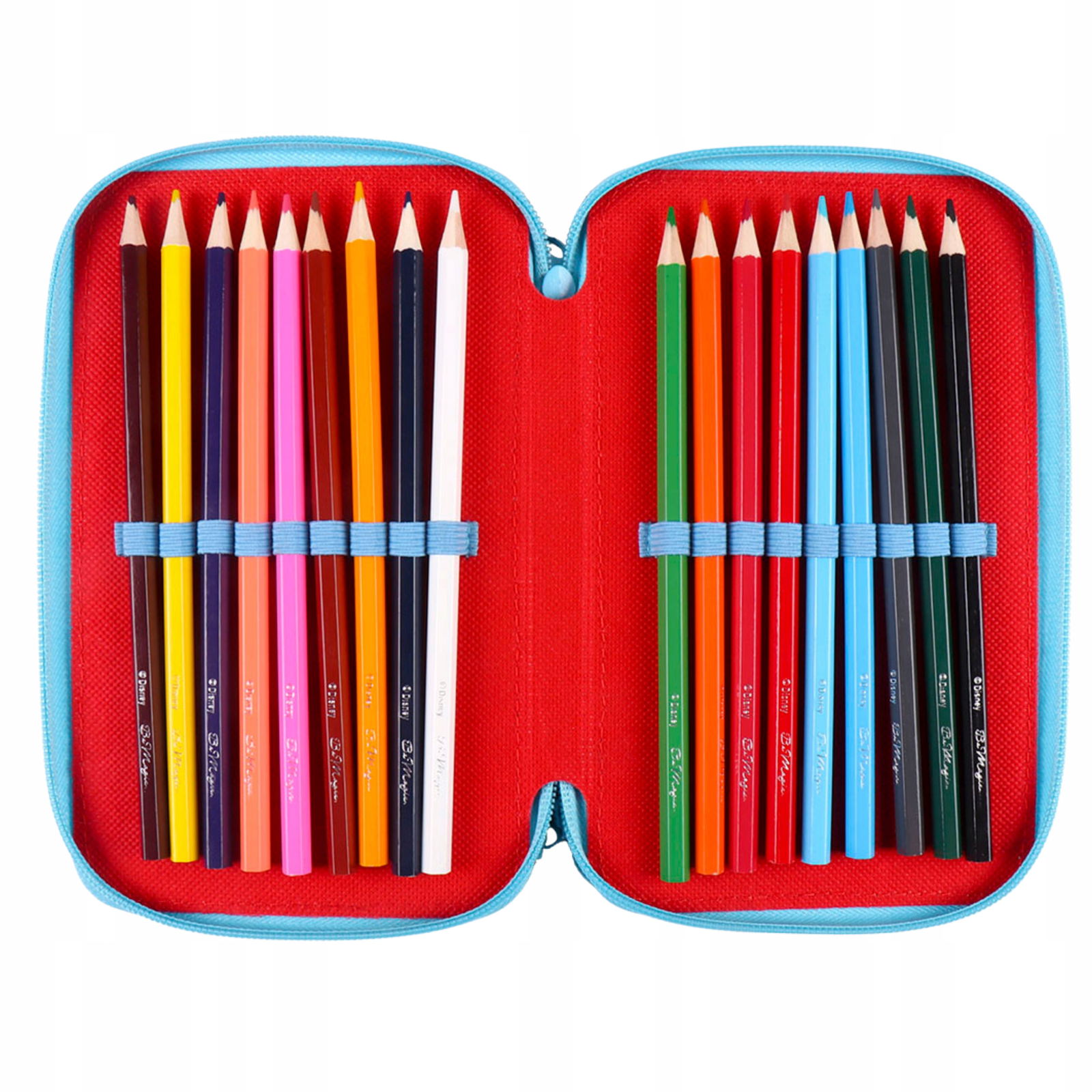 Piórnik trójkomorowy potrójny Myszka Miki Disney 43 el z wyposażeniem
