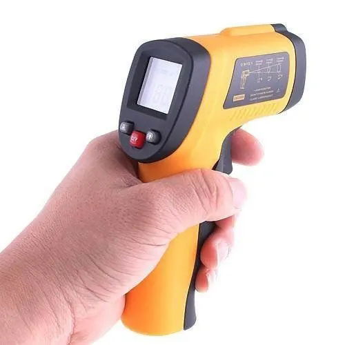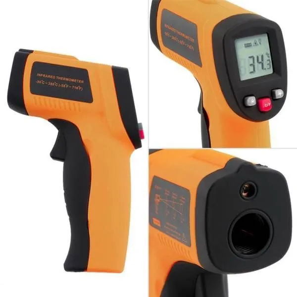 Termometr na podczerwień, pozwala na precyzyjne zmierzenie temperatury w zakresie -50 do +380 stopni Celsjusza. Miernik pozwala na zmierzenie trudno dostępnych miejsc o wysokiej temperaturze.