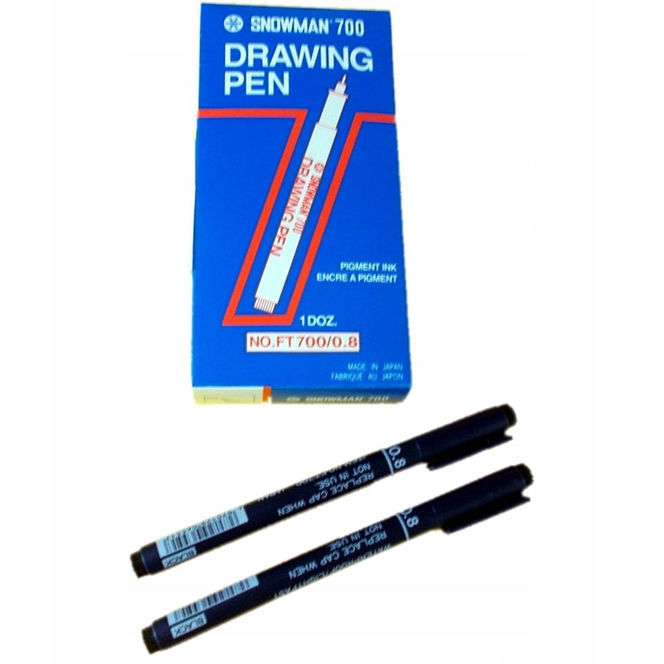Pisak kreślarski czarny Snowman o grubości 0,8 mm to precyzyjne narzędzie do rysunku technicznego i kreślenia. Tusz pigmentowy na bazie wody zapewnia trwałość i intensywny kolor. Zestaw zawiera 12 sztuk, co sprawia, że jest idealny do profesjonalnych i artystycznych zastosowań. Produkt zapakowany w pudełko, co ułatwia przechowywanie. Doskonały wybór dla grafików, studentów i osób ceniących precyzyjne pisanie.