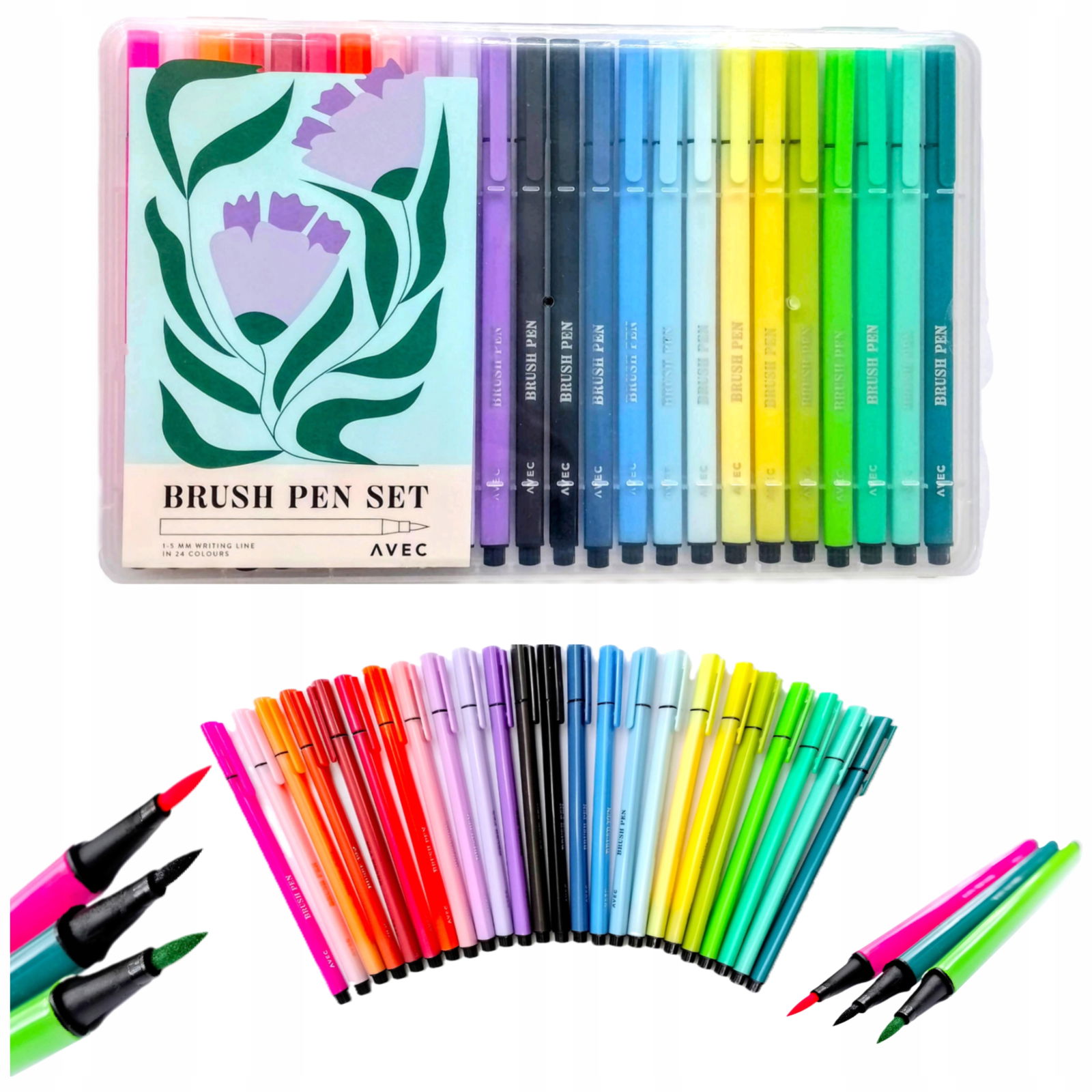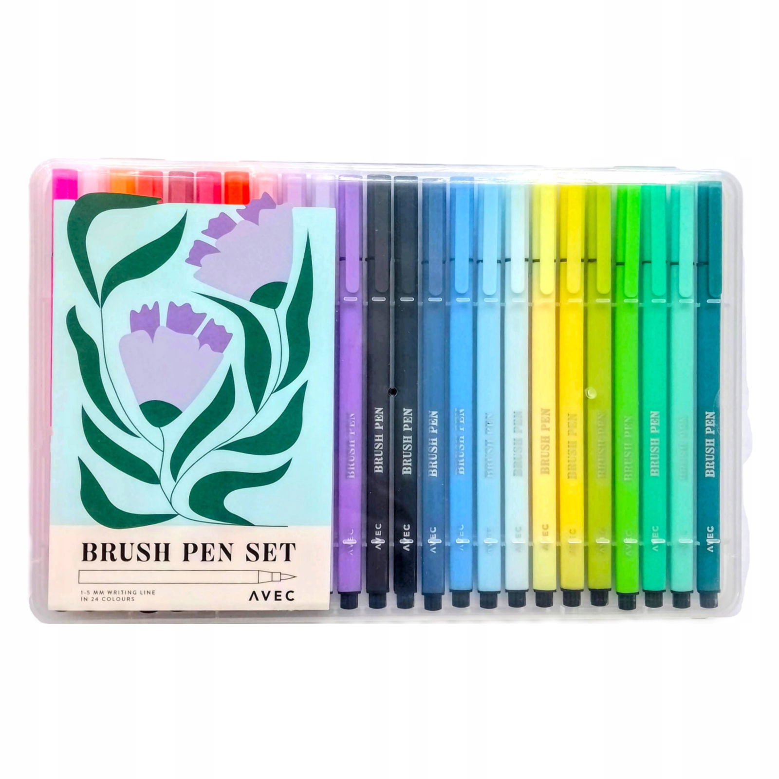 Pisaki Markery Pędzelkowe Cienkopisy BRUSH PENS 1-5 mm 24 szt w Etui Avec