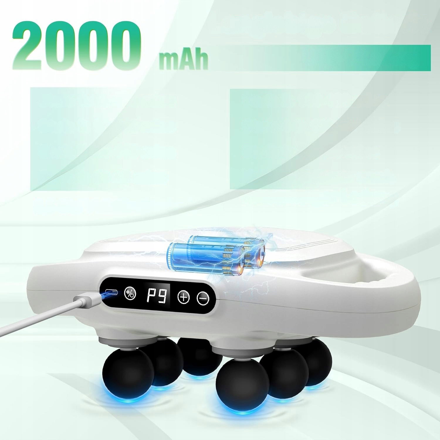 Pistolet do Masażu 6 głowic 9 trybów Masaż Mięśni Przenośny BIAŁY