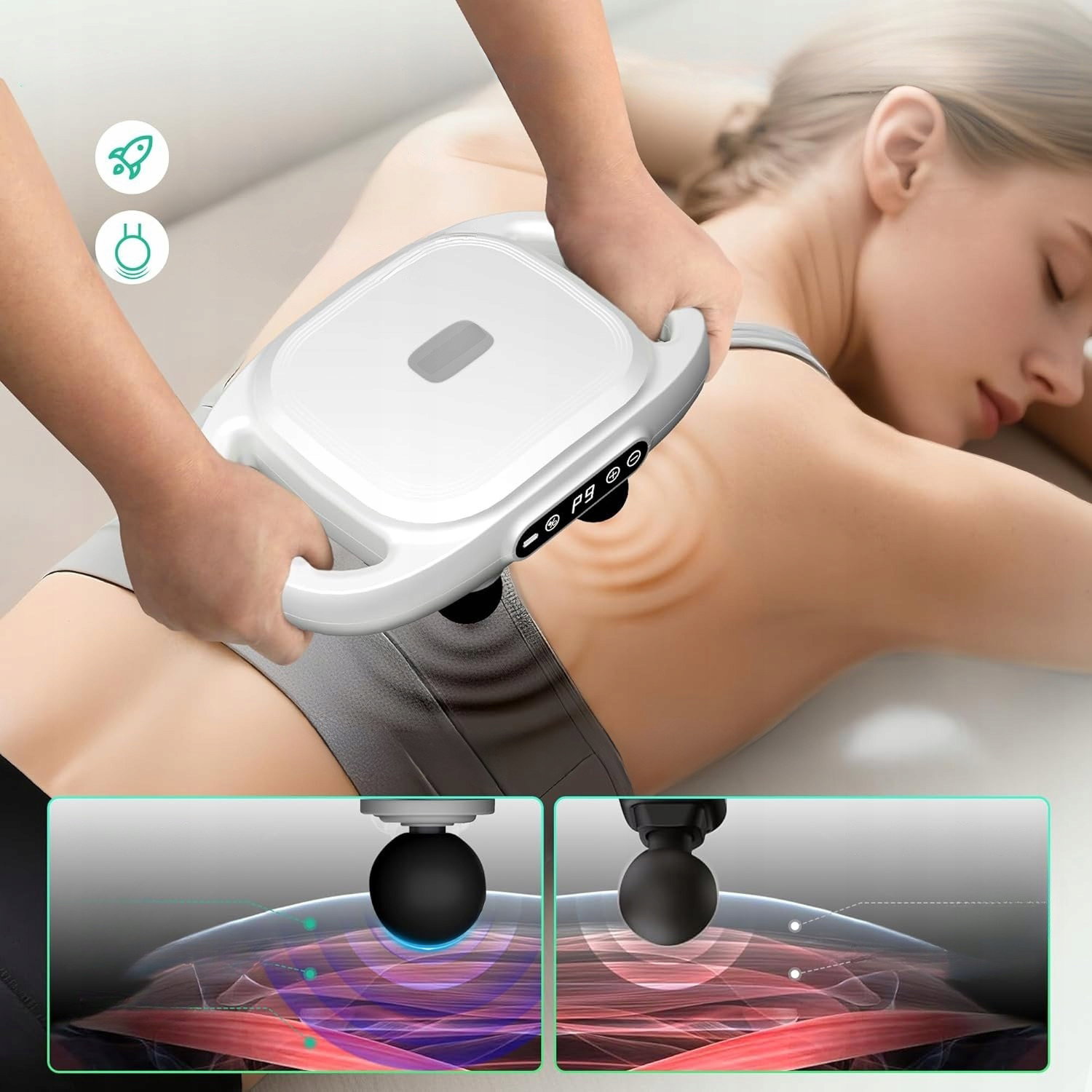 6-głowicowy pistolet do masażu, z 9 trybami masażu i 9 regulowanymi prędkościami, urządzenie do masażu z czerwonym światłem do łagodzenia napięcia mięśni i zmęczenia pleców, talii, ud, biały