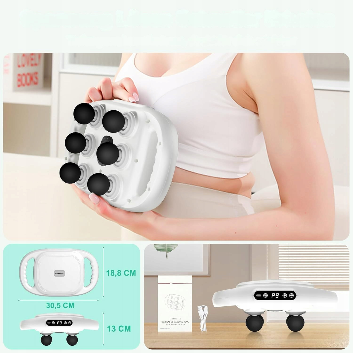 Konstrukcja z sześcioma głowicami roboczymi pozwala objąć większą powierzchnię ciała i intensywniej oddziaływać na głębokie warstwy mięśni.