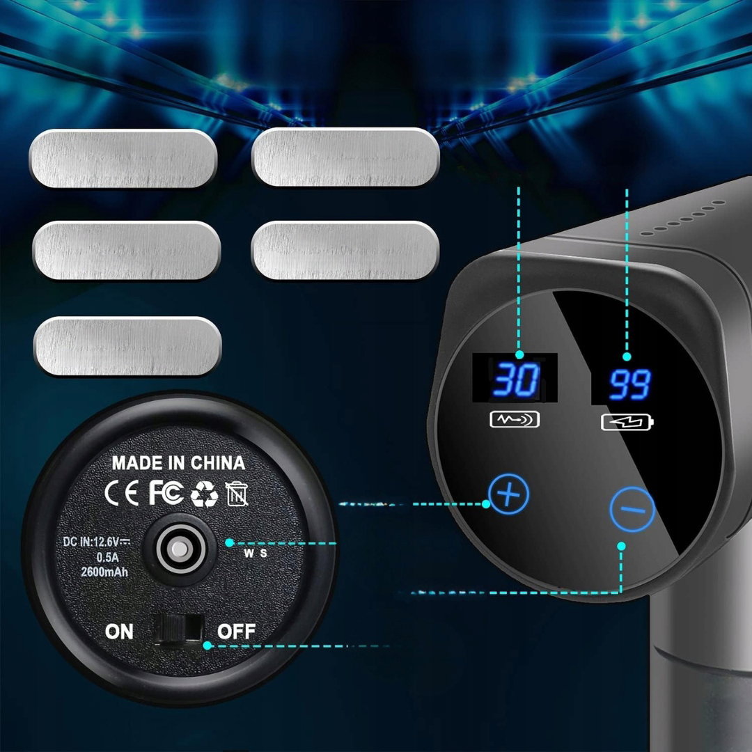 Pistolet do masażu Deep Tissue, perkusyjny masażer mięśni z regulowanymi prędkościami 30, cichy ręczny masażer do relaksacji pleców sportowca, ekran dotykowy LCD z głowicami 12.