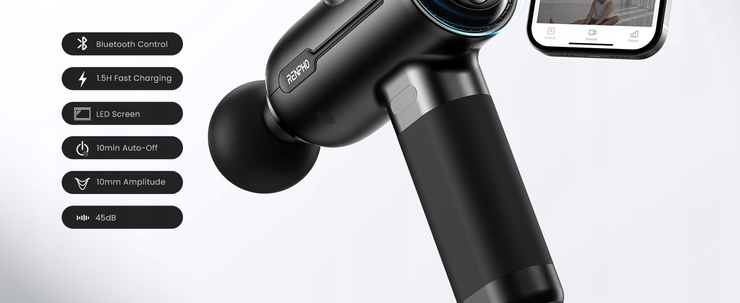 Pistolet do masażu z Bluetooth, RENPHO Activ+ z wyświetlaczem dotykowym LED
