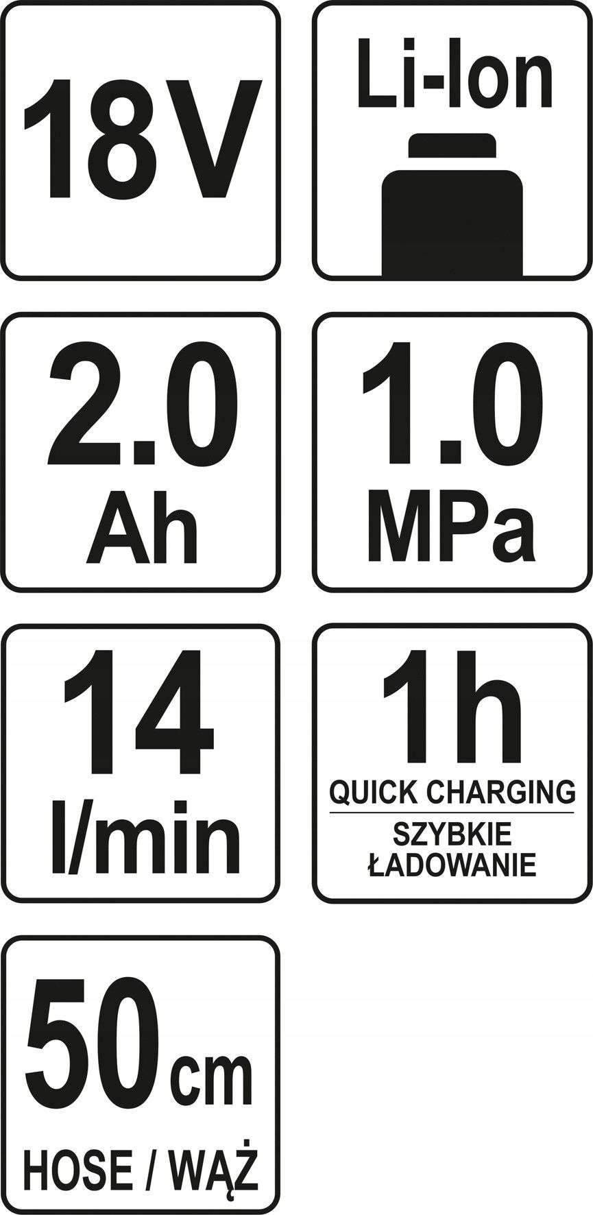 - w sprzedaży zapasowe akumulatory o pojemnościach: 2 Ah (YT-828461), 3 Ah (YT-828462), 4 Ah (YT-828463) i 6 Ah (YT-828464)