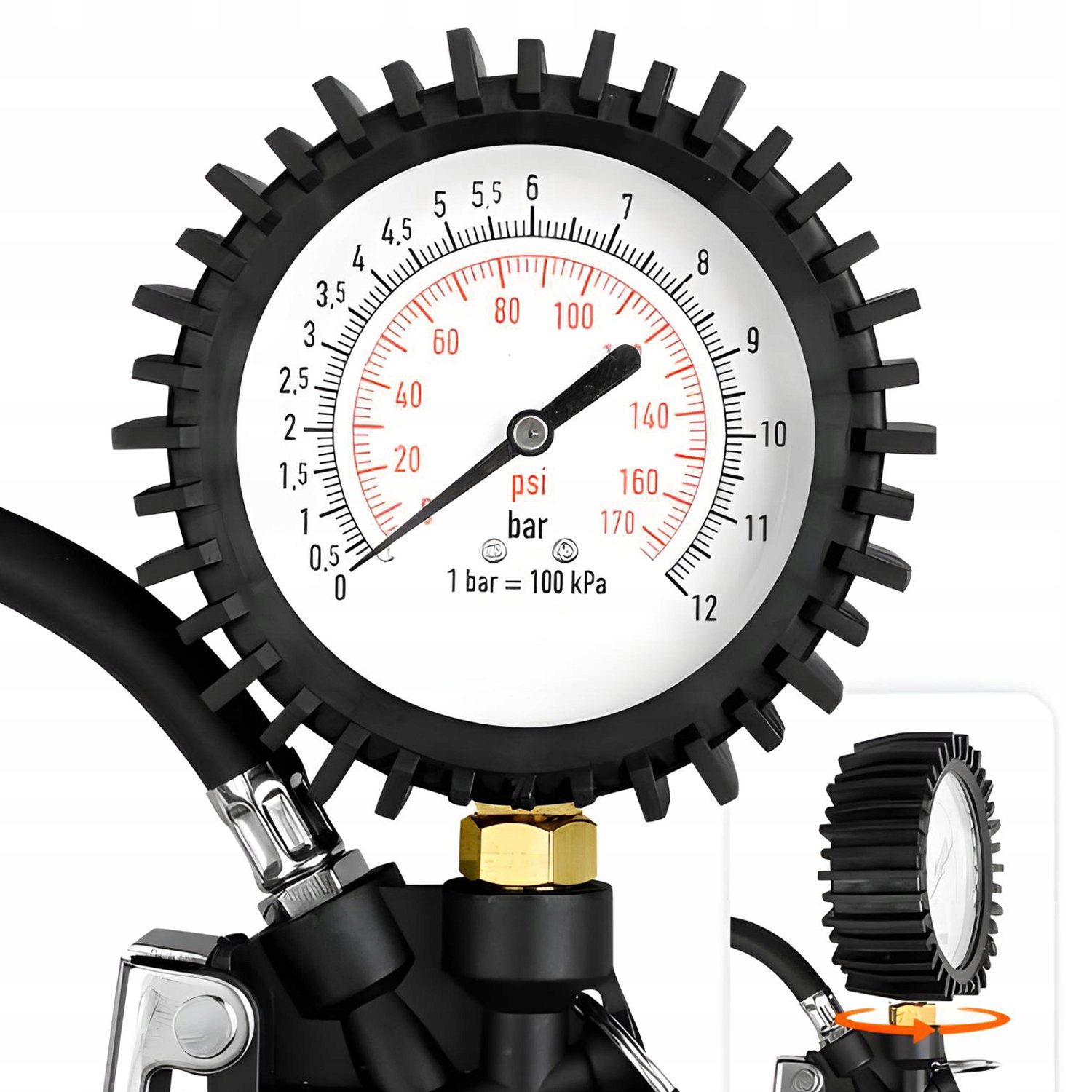 PISTOLET DO POMPOWANIA KÓŁ Z MANOMETREM 12 BAR ZAWÓR SPUSTOWY ZEGAR DUŻY XL