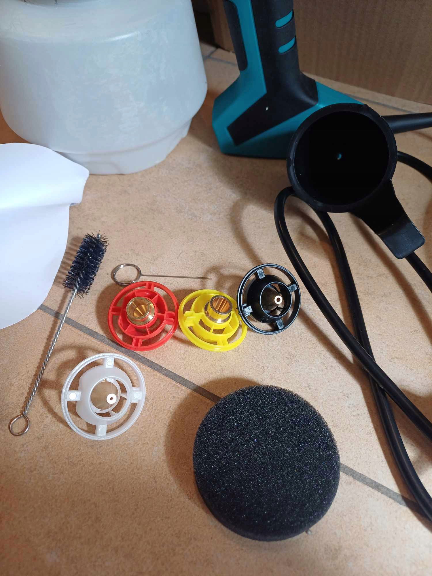 Bez skomplikowanych narzędzi – składasz w minutę. W zestawie gąbka zapasowa, szczotka i igła do czyszczenia dysz. Pamiętaj: wyczyść po użyciu, a sprzęt posłuży Ci latami.