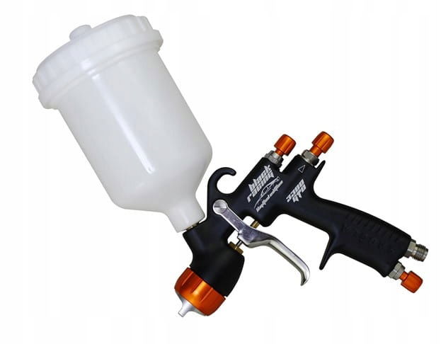 Bezkompromisową jakość osiągnięto dzięki wykorzystaniu wysokiej jakości materiałów: korpus wykonany z wysokiej jakości aluminium podanemu polerowaniu oraz anodowaniu, dysza iglica stal nierdzewna, uszczelki odporne na działanie rozpuszczalników – teflon ciągniony. Zbiornik górny z zabezpieczaniem przed kapaniem. Zawór powietrza atomizującego umieszczony w jednej linii z iglicą daje doskonałą władzę nad aplikacją. Doskonała ergonomia oraz balans pistolet po podpięciu węża doskonale się układa w dłoni, nie męczy i daje dużo swobody. Spust oraz regulacja szerokości strumienia jak również powietrza zasilającego dają możliwość precyzyjnej regulacji i kalibracji a podczas pracy na pewno nie będą zmieniać nastawionych parametrów.