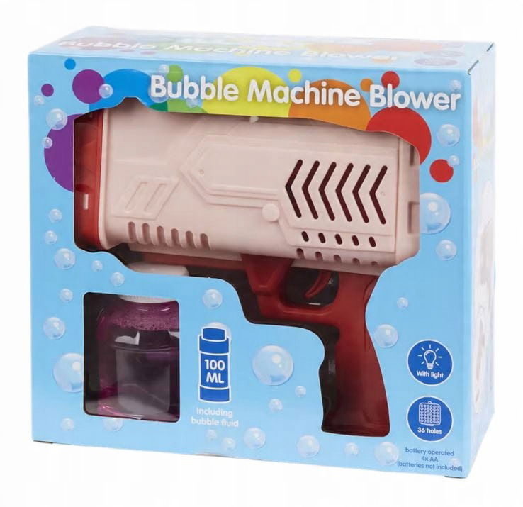 Pistolet na bańki mydlane łatwo wytwarza dużo bąbelków. Pistolet jest wyposażony w światło, które zapala się przy każdym „strzale”.