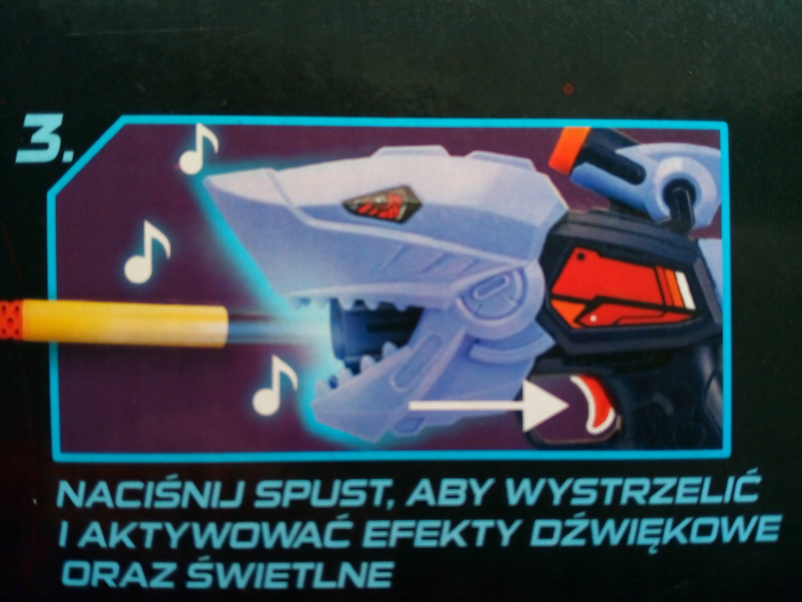 PISTOLET NA STRZAŁKI WYRZUTNIA MEGALODON ZASIĘG 5 m efekty DŹWIĘK ŚWIATŁO