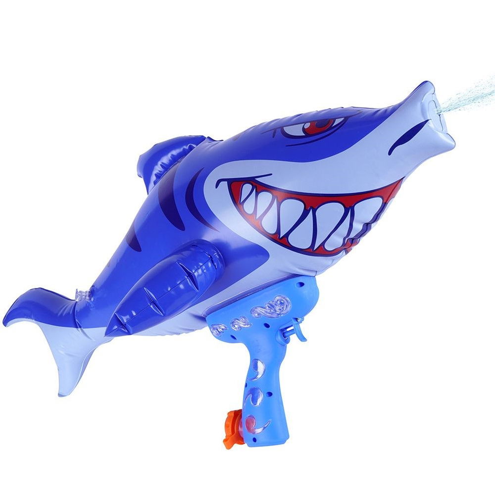 ŚWIETNA ZABAWA - Nadmuchiwany pistolet na wodę w kształcie rekina, idealny do zabawy w wodzie i na świeżym powietrzu. W skład zestawu wchodzi: pistolet oraz pompka. Pistolet ma wymiary 70 x 28 x 38 cm.