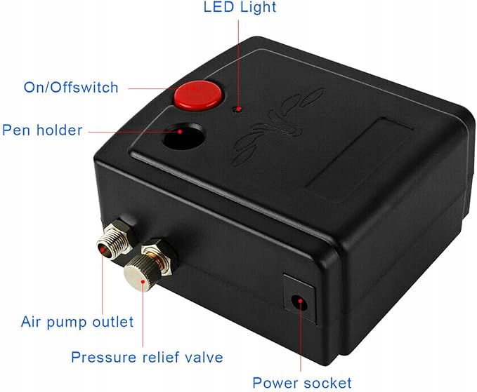 Praktyczny i przenośny: wygodne użytkowanie pistoletu Airbrush dzięki uchwytowi 360 stopni. Cichy kompresor z automatycznym wyłączaniem i niską wagą, przenośny i łatwy do przenoszenia.