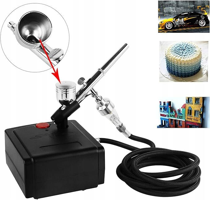 Wielofunkcyjność: pistolet natryskowy do modelarstwa, wypieków, Nail Art, tatuażu, ciasta, żywności, makijażu, lakierowania, farb do skóry, czekolady, figurek, włosów, samochodów, przyborów kuchennych, malowania ciała, butów, kuchni itd.