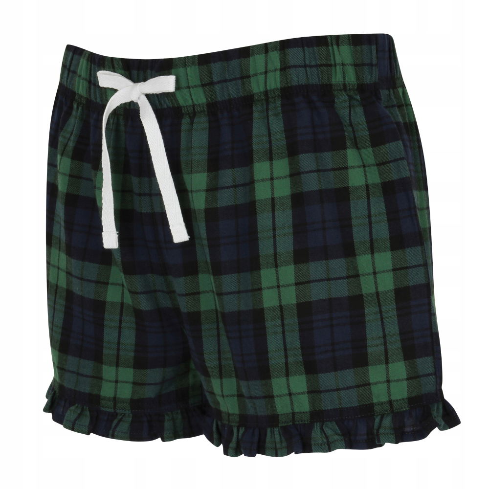 Wygodne, stylowe i niezwykle miękkie szorty wykonane w 100% z wysokiej jakości flaneli o diagonalnym splocie. Te tkane szorty w klasyczną szkocką kratę dodadzą Twojej garderobie przytulnego, modnego akcentu. Wykończone subtelną falbanką u dołu nogawek podkreślają lekki, kobiecy styl. Elastyczny pas regulowany troczkiem w kontrastowym kolorze gwarantuje wygodę i idealne dopasowanie. Dodatkowym atutem jest łatwo odrywalna metka co zwiększy komfort użytkowania.