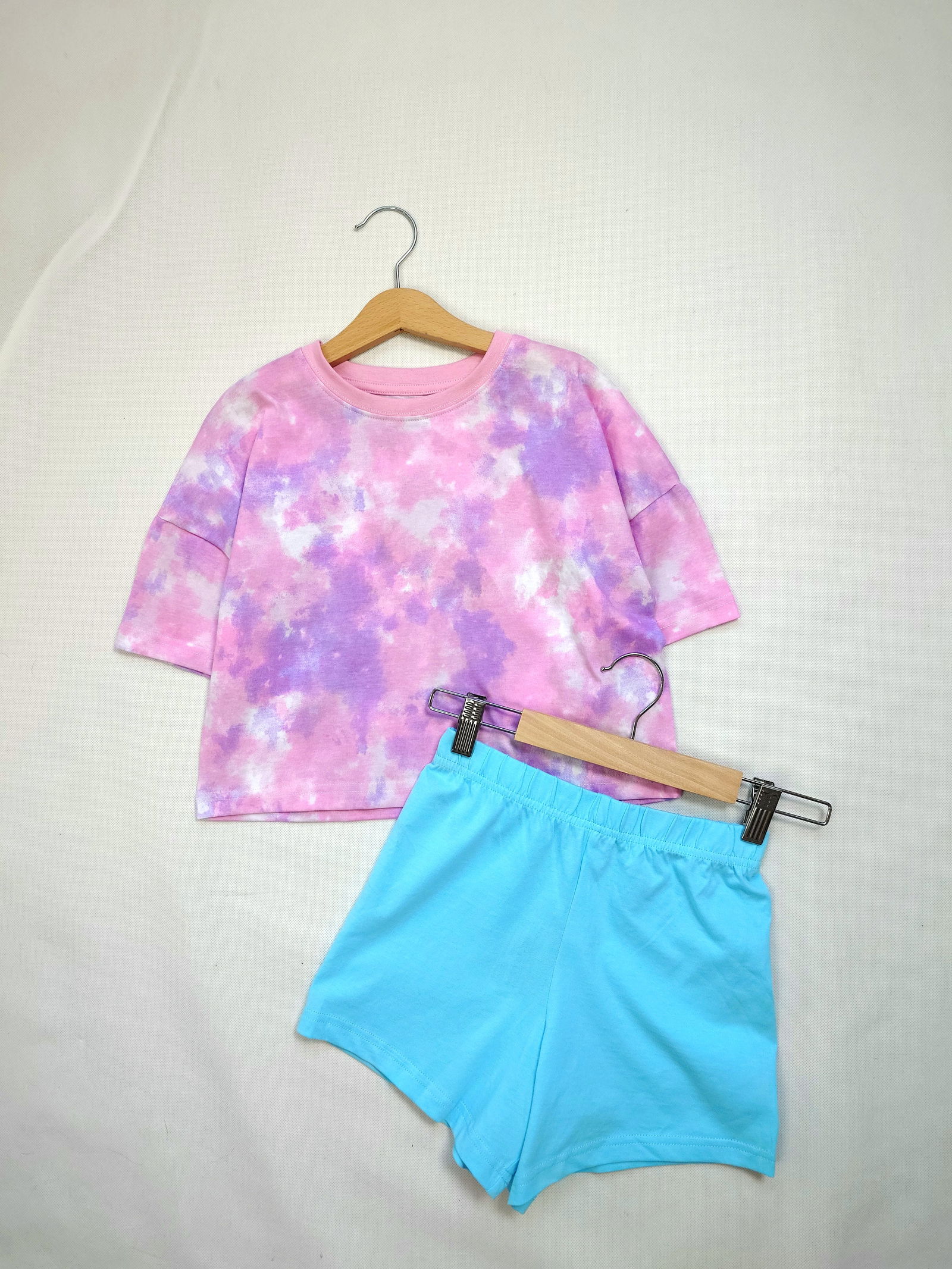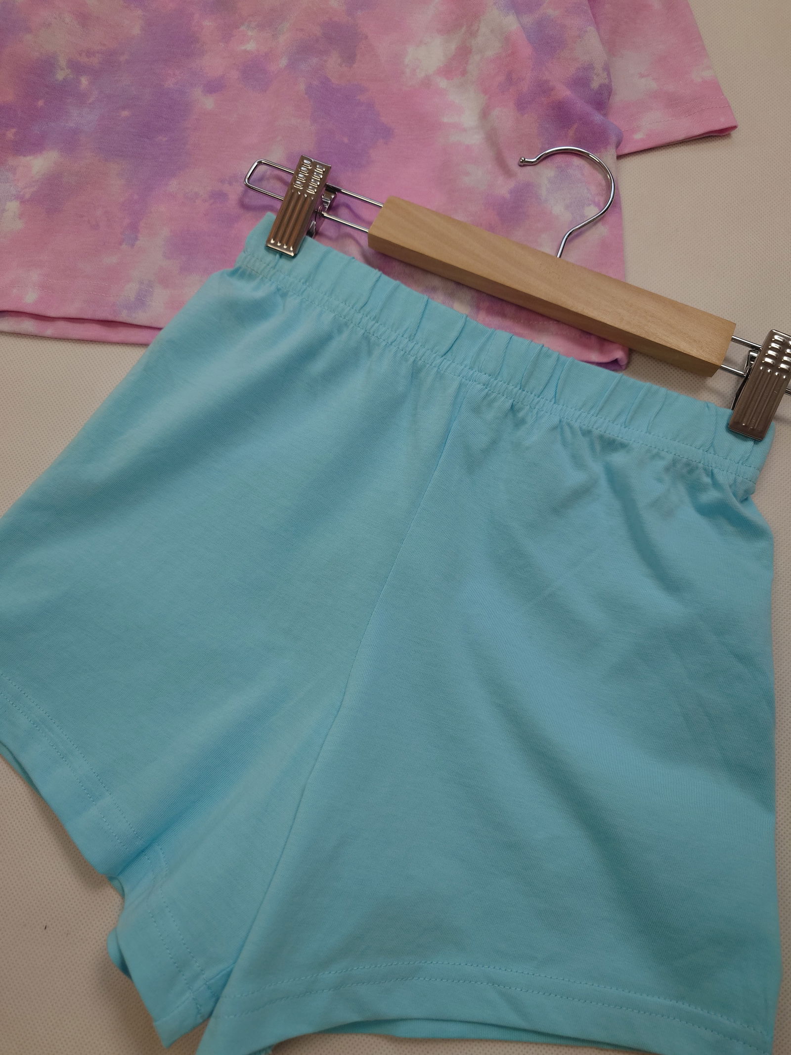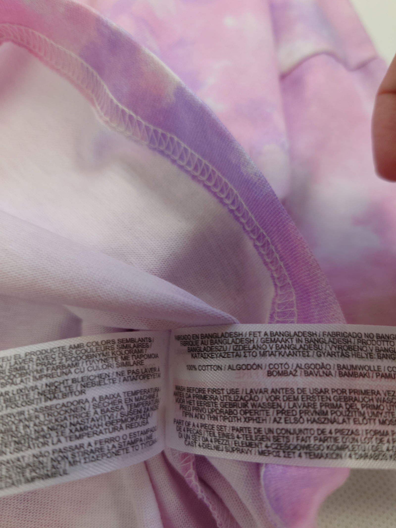 Piżama dziewczęca lawendowo-niebieska Primark 128 Rozmiar: 7-8 / 128 Wymiary: koszulka - szerokość 41 x2 długość 38 szorty - pas 27-36 x2 długość 27 Stan: nowy Skład: bawełna Wymiary mogą się różnić o +-1 cm (około 2 cm, jeśli tkanina się rozciąga). Kolor i odcień mogą się różnić w zależności od urządzenia, na którym wyświetlane jest zdjęcie