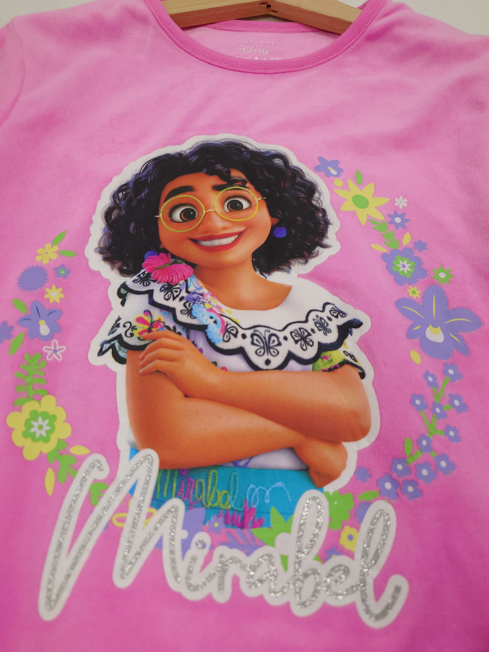 Piżama dziewczęca welurowa Encanto Disney Primark 128 Rozmiar: 7-8 . 128 Wymiary: koszulka - szerokość 37 x2 długość 47 spodnie - pas 26-37 x2 długość 77 Stan: nowy, z metką (naklejką) Skład: poliester Wymiary mogą się różnić o +-1 cm (około 2 cm, jeśli tkanina się rozciąga). Kolor i odcień mogą się różnić w zależności od urządzenia, na którym wyświetlane jest zdjęcie