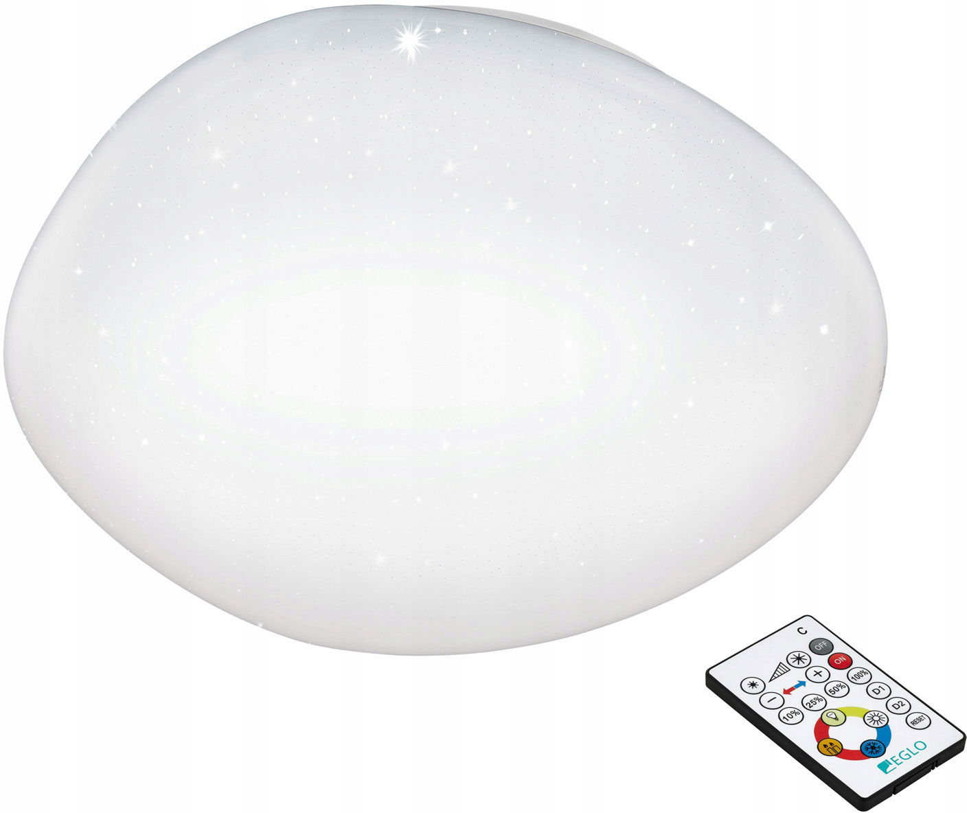 Ta lampa sufitowa posiada zintegrowany moduł LED o mocy 21W, którego barwę światła oraz natężenie można regulować za pomocą dołączonego w zestawie pilota.