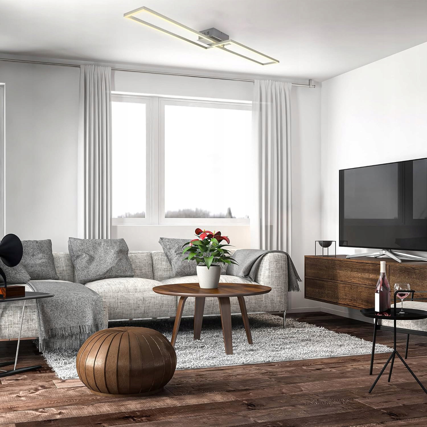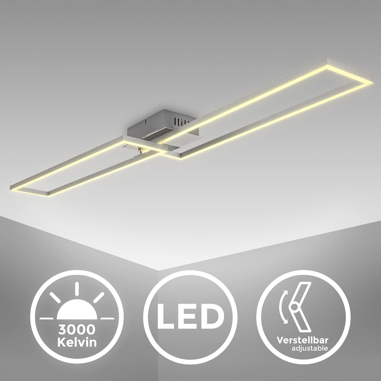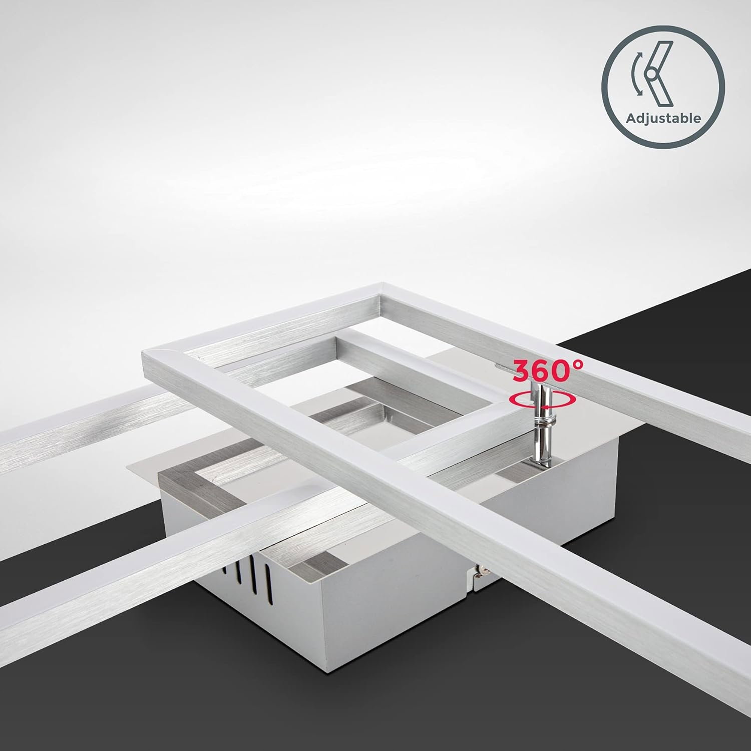 B.K.Licht LED Frame 40 W to odchylana lampa sufitowa o ciepłej barwie 3000 K, która tworzy przyjemną atmosferę, a jednocześnie zapewnia komfortowe światło do pracy. Wykończenie chrom–aluminium dodaje wnętrzu nowoczesnego charakteru.