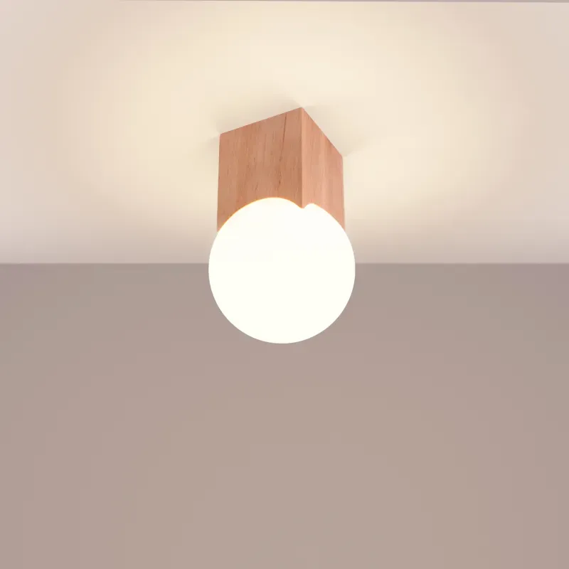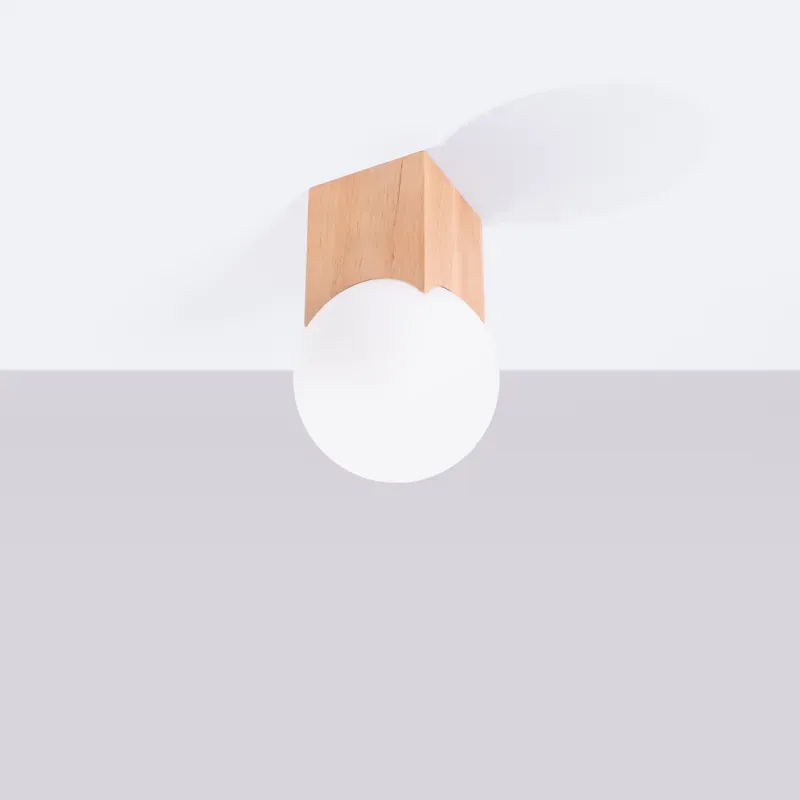 Plafon SOLIS wykonany z naturalnego drewna to nowoczesne oświetlenie sufitowe, które łączy w sobie ciepło drewna z minimalistycznym designem. Drewniana baza w naturalnym odcieniu podtrzymuje kulisty, matowy klosz, tworząc elegancki kontrast.