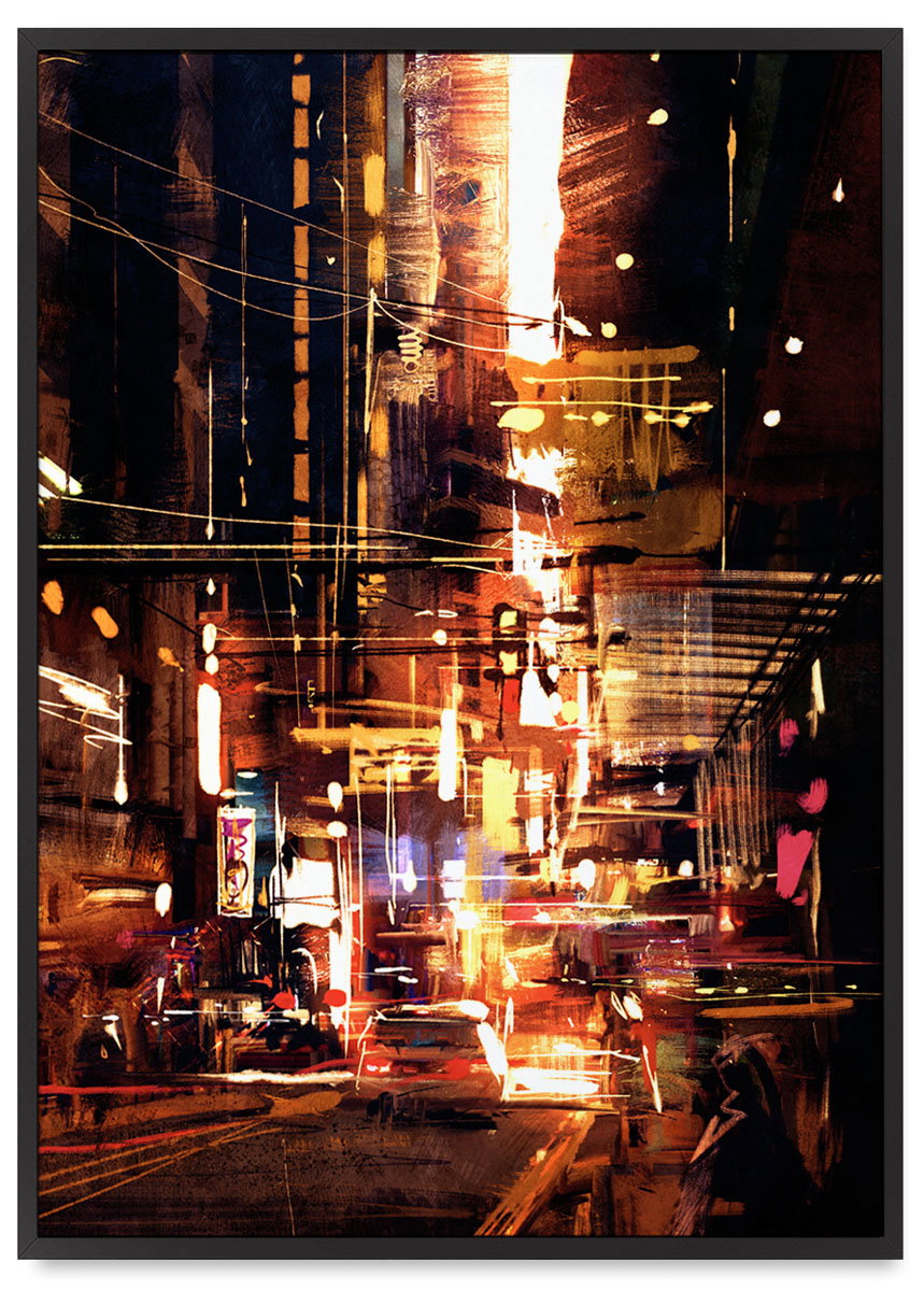 Plakat china town miasto abstrakcja 21x30 cm w czarnej ramie