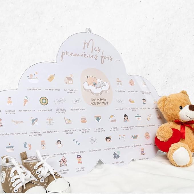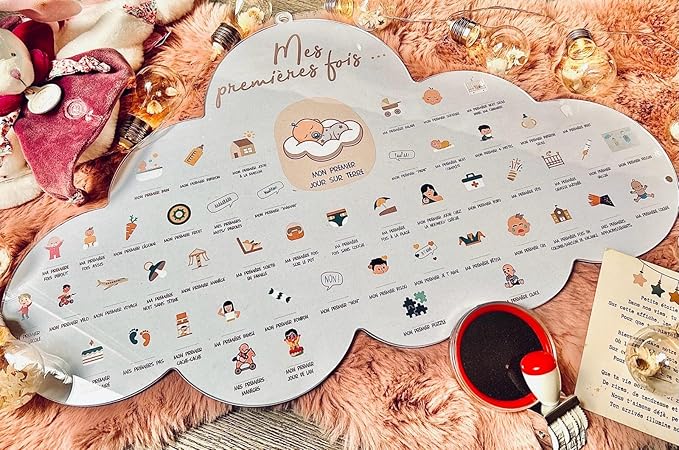 PLAKAT CHMURKA DO STEMPLOWANIA DAT PIERWSZYCH CHWIL DZIECKA FRANCUSKI