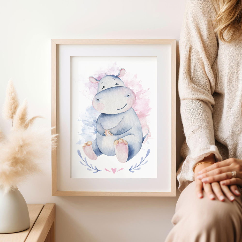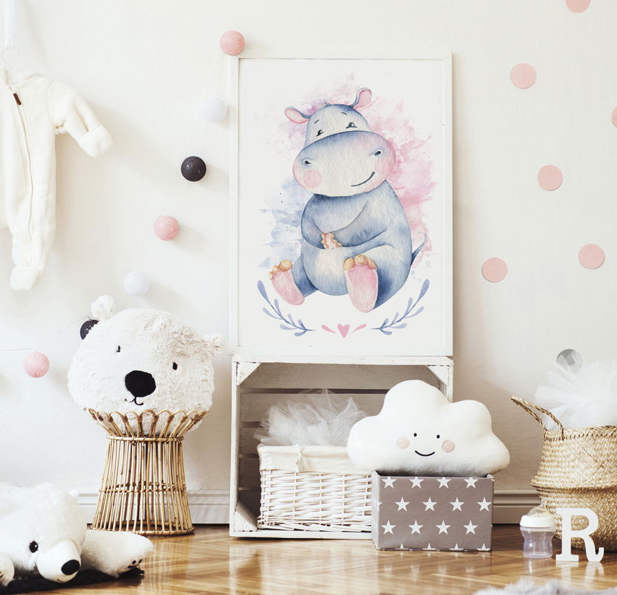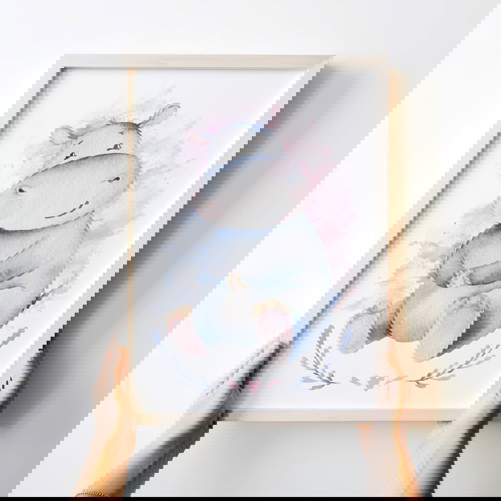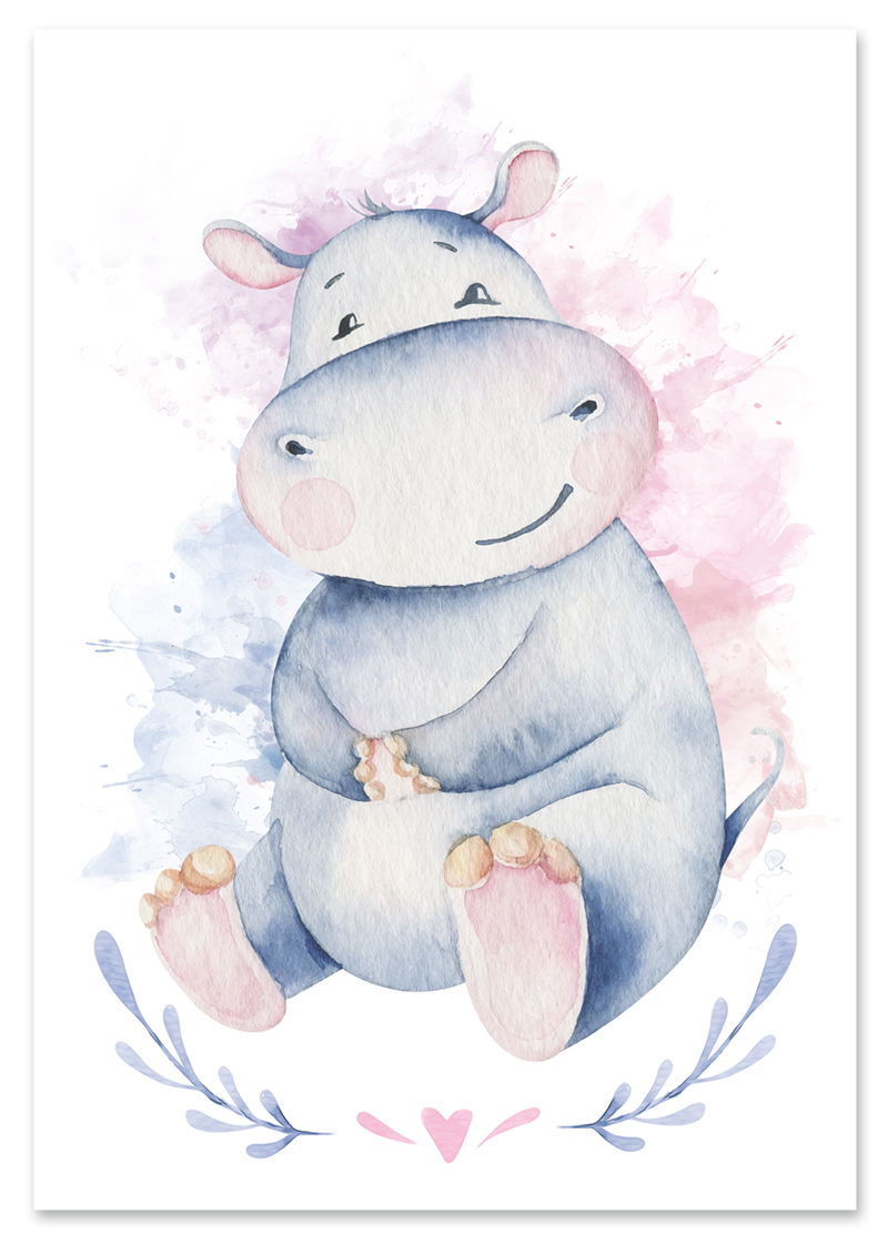 Plakat do pokoju dziecka hipopotam słodkie zwierzaki 30x40 cm