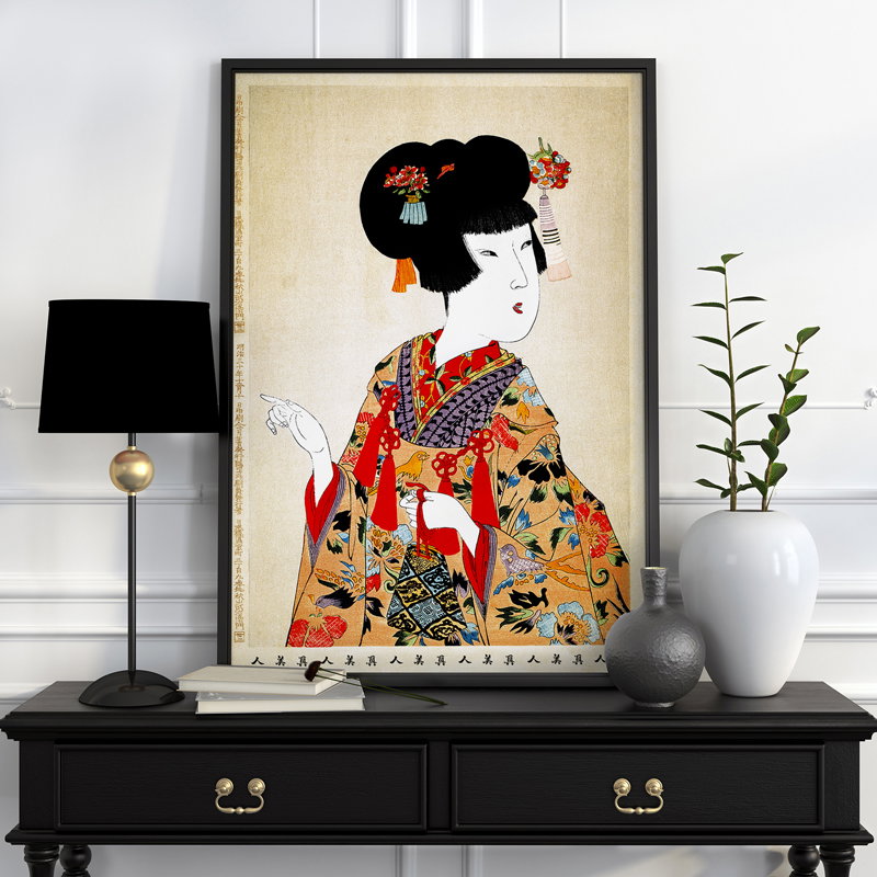 Plakat gejsza japońskie obrazy 40x50 cm w czarnej ramie