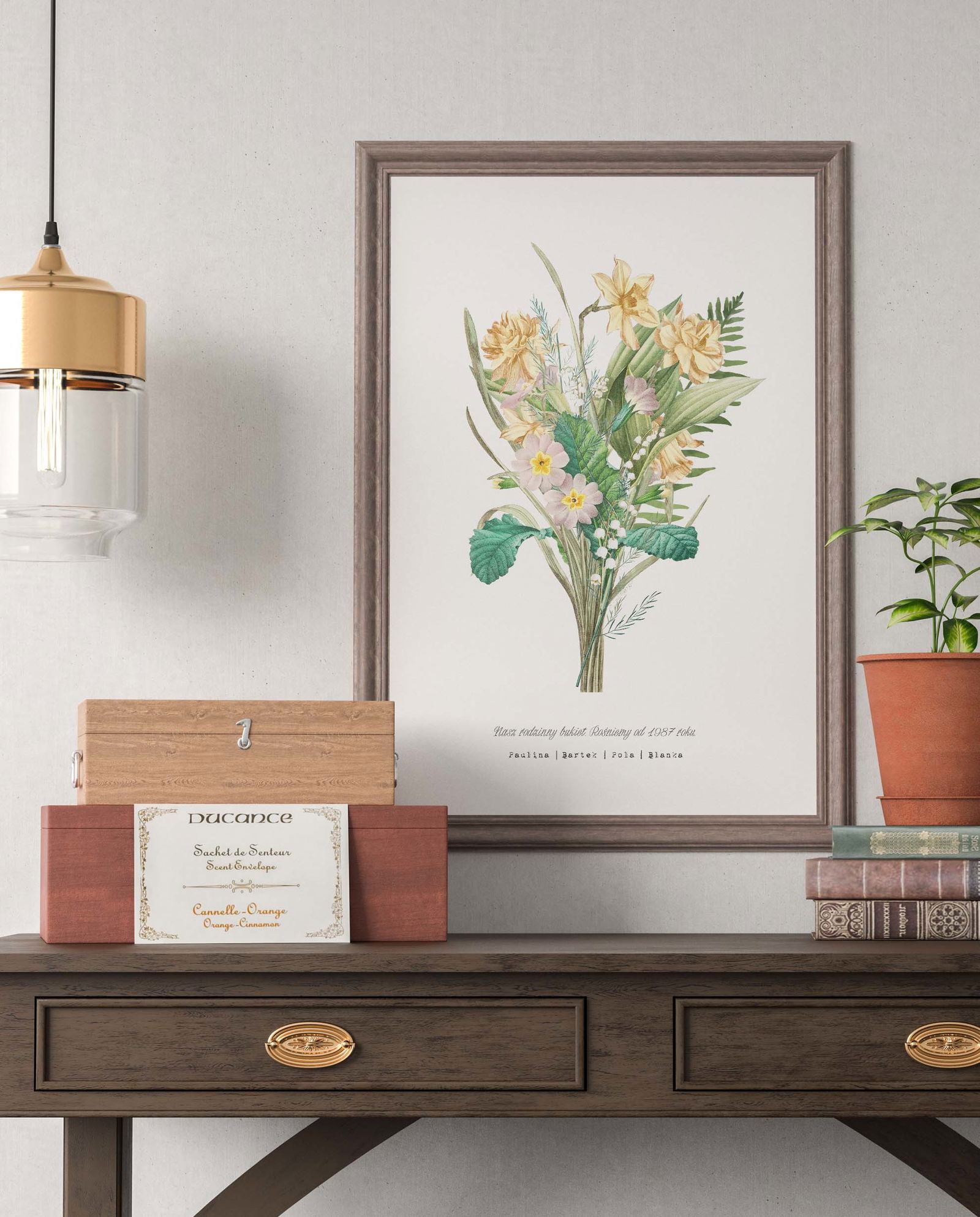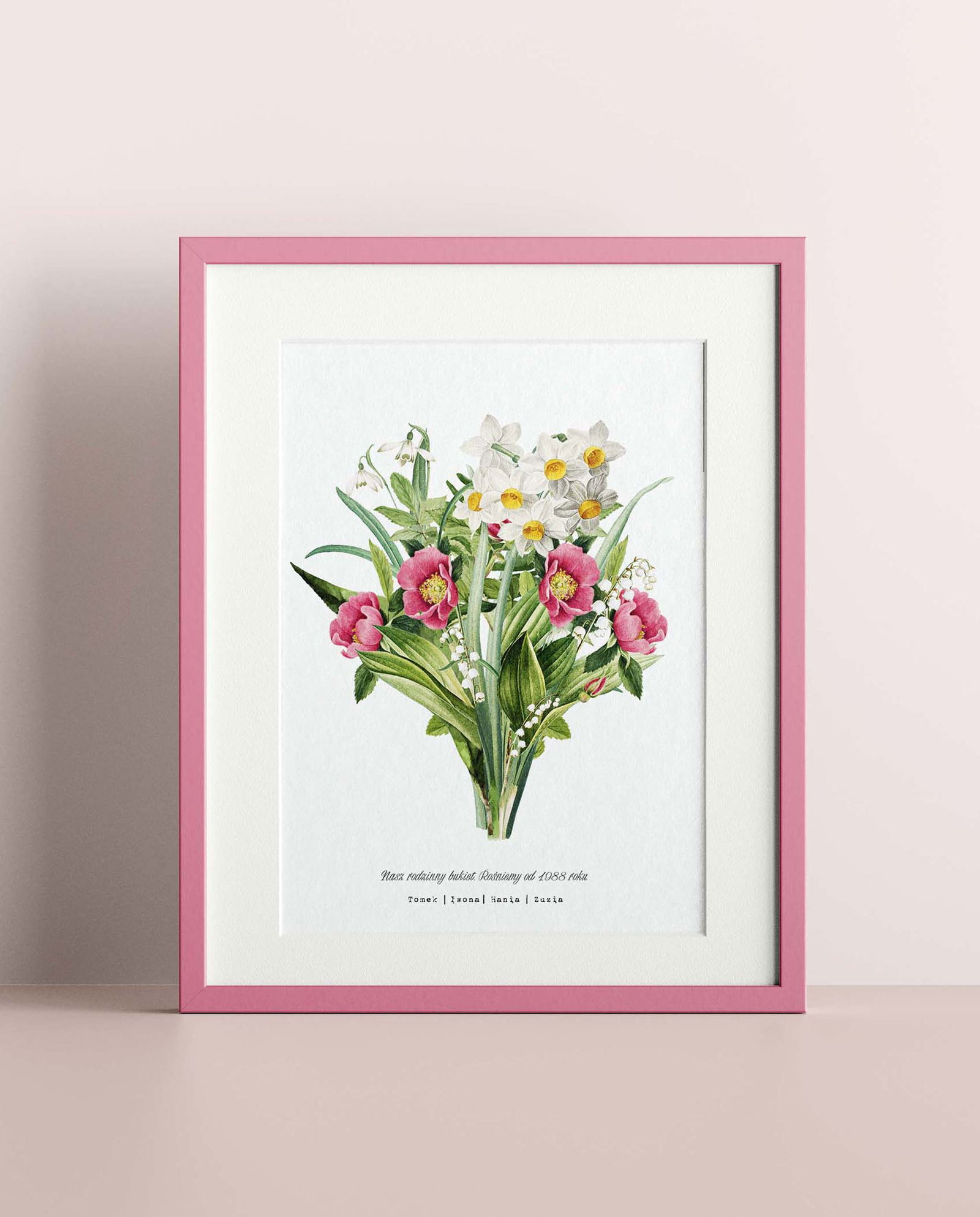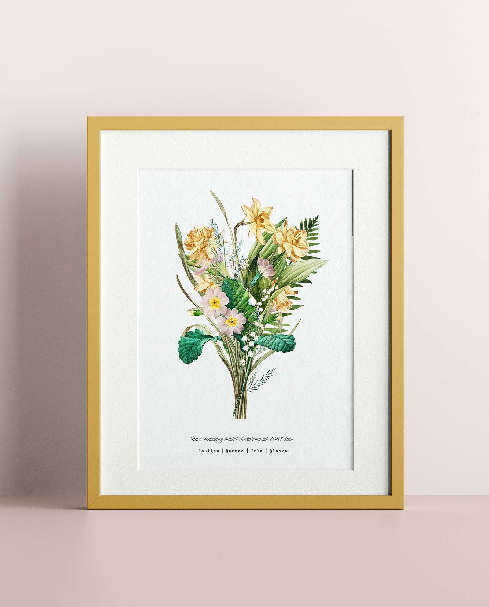 Personalizowany obraz będzie wspaniałym prezentem dla Ciebie lub Twoich bliskich. Bukiet złożony z kwiatów „urodzinowych” dla każdego członka rodziny.