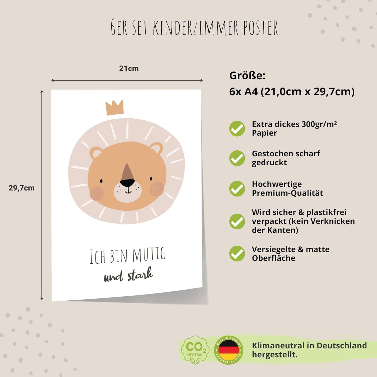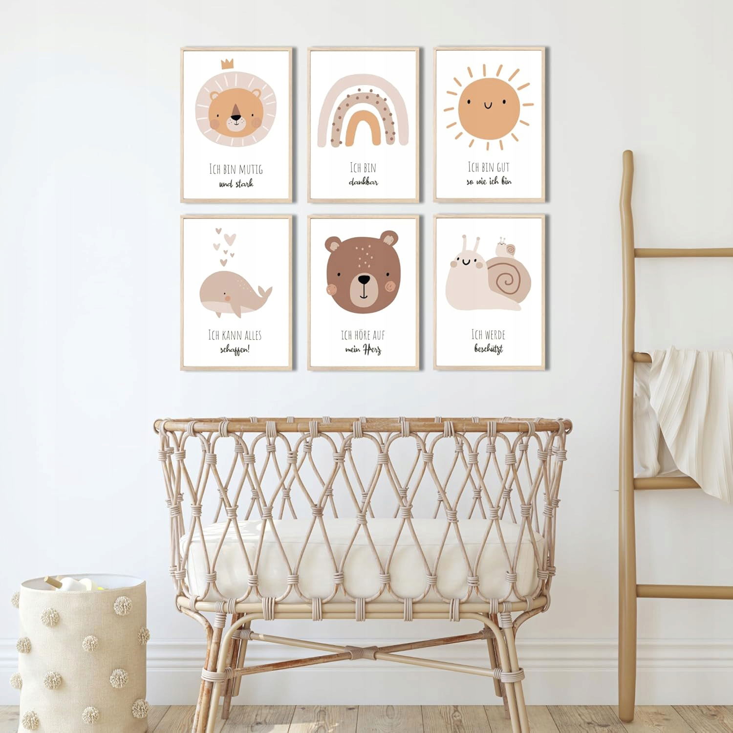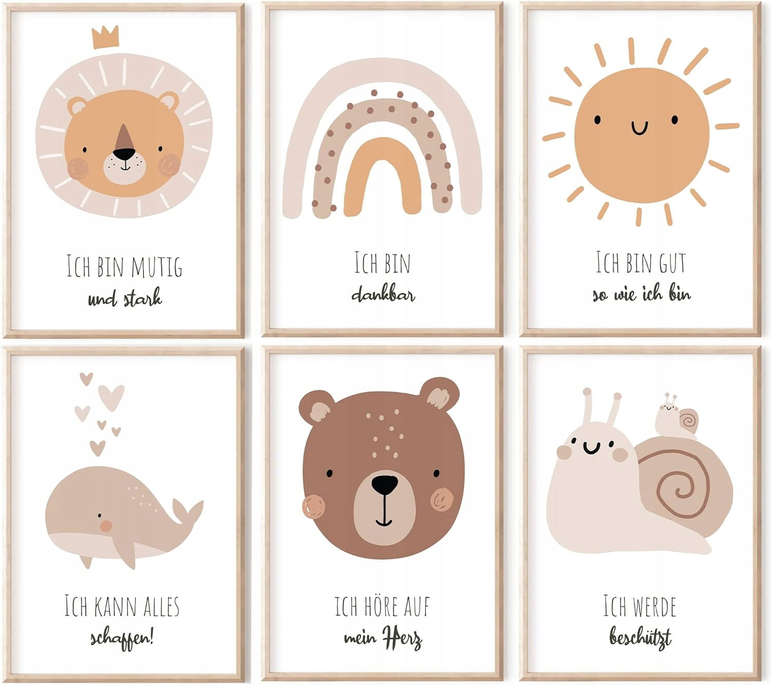 Plakaty A4 do pokoju dziecięcego, zestaw 6 sztuk, bez ramy