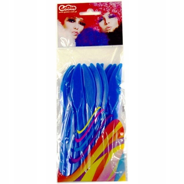 Funkcjonalne i stylowe plastikowe noże w kolorze niebieskim, idealne na przyjęcia, grille czy pikniki. Zestaw zawiera 12 sztuk, zapakowanych w praktyczny woreczek. Doskonałe uzupełnienie jednorazowej zastawy stołowej.