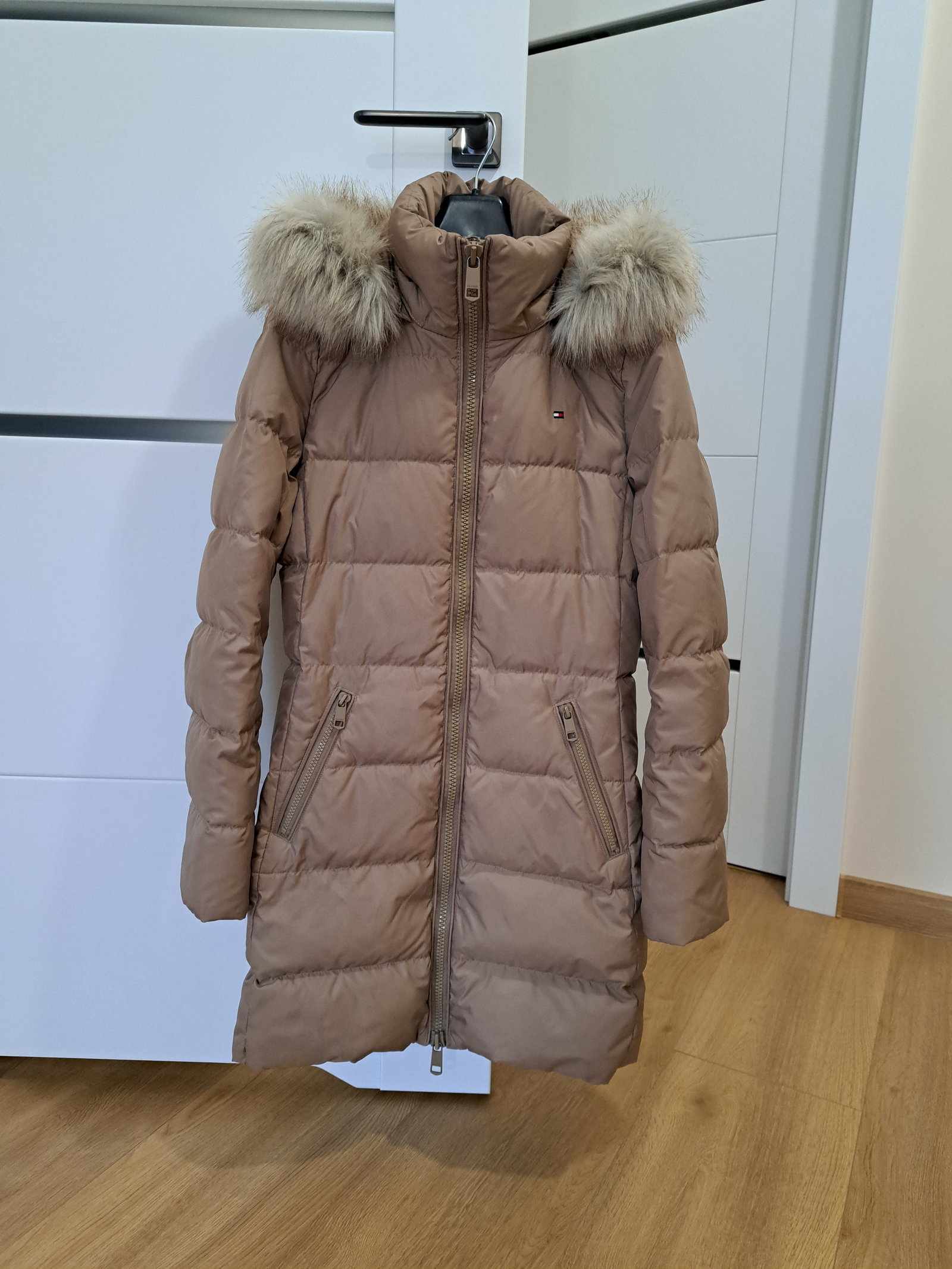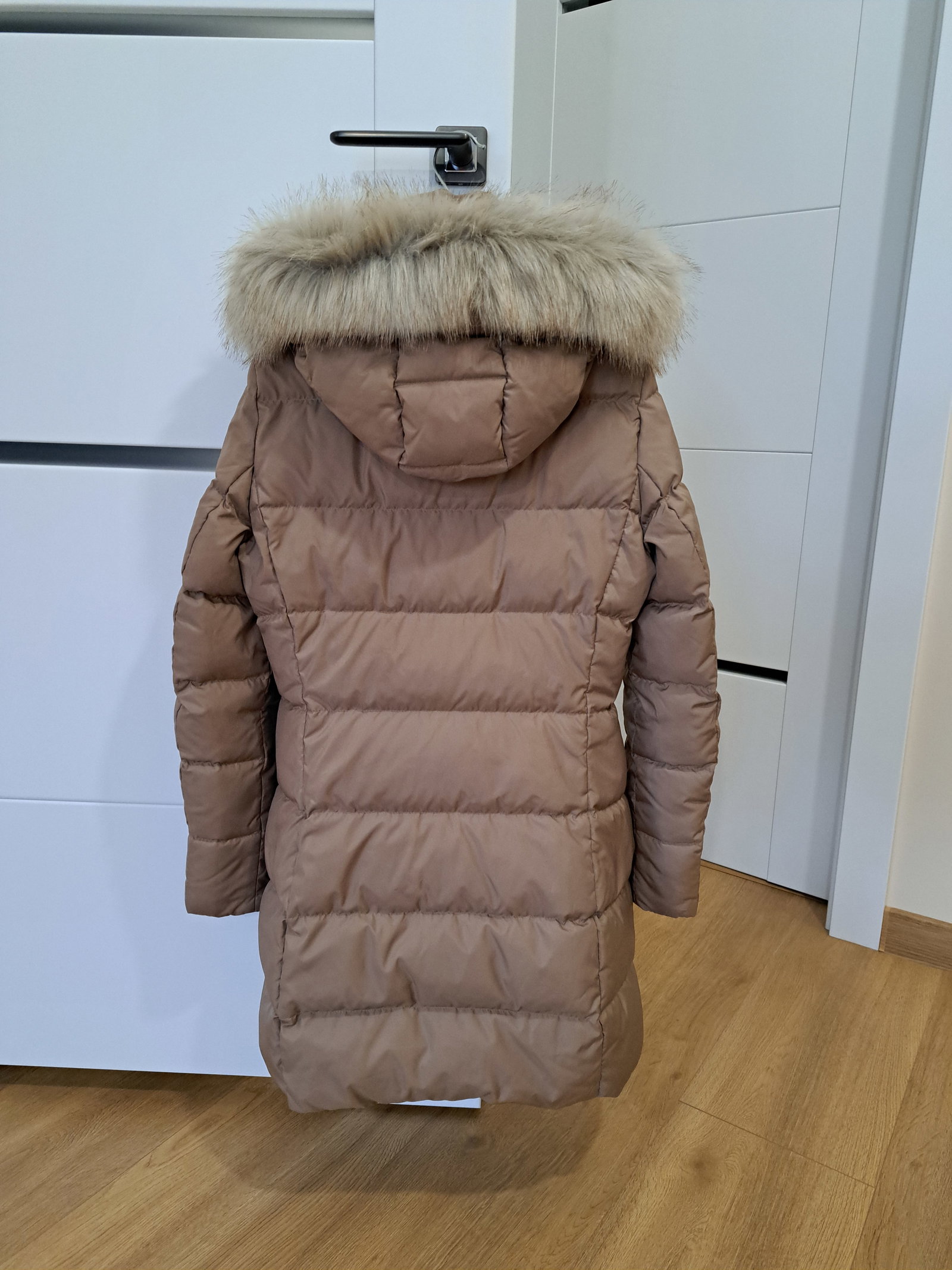Stan płaszcza idealny, brak wad, założony zaledwie kilka razy, wypełniony puchem i pierzem, ciepły. Kaptur odpinany, futerko przy kapturze również. Wymiary znajdują się na zdjęciach. Serdecznie zapraszam do zakupów.