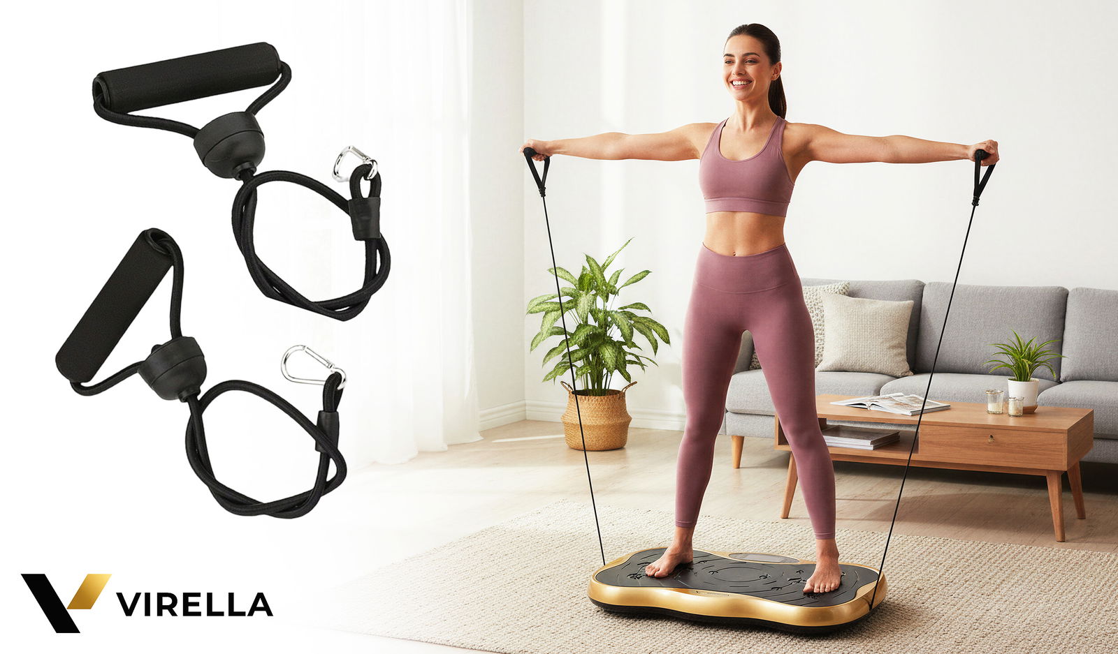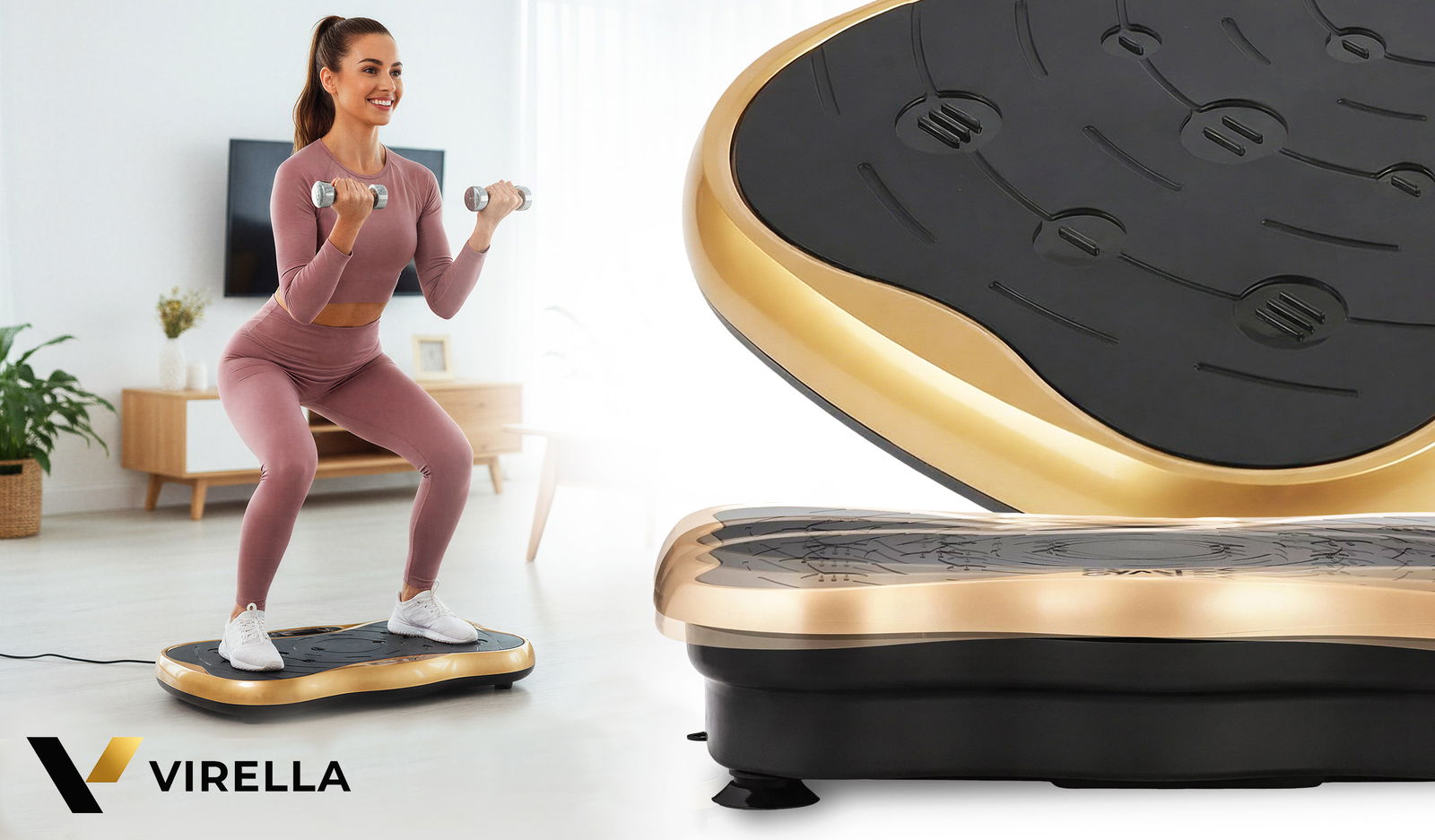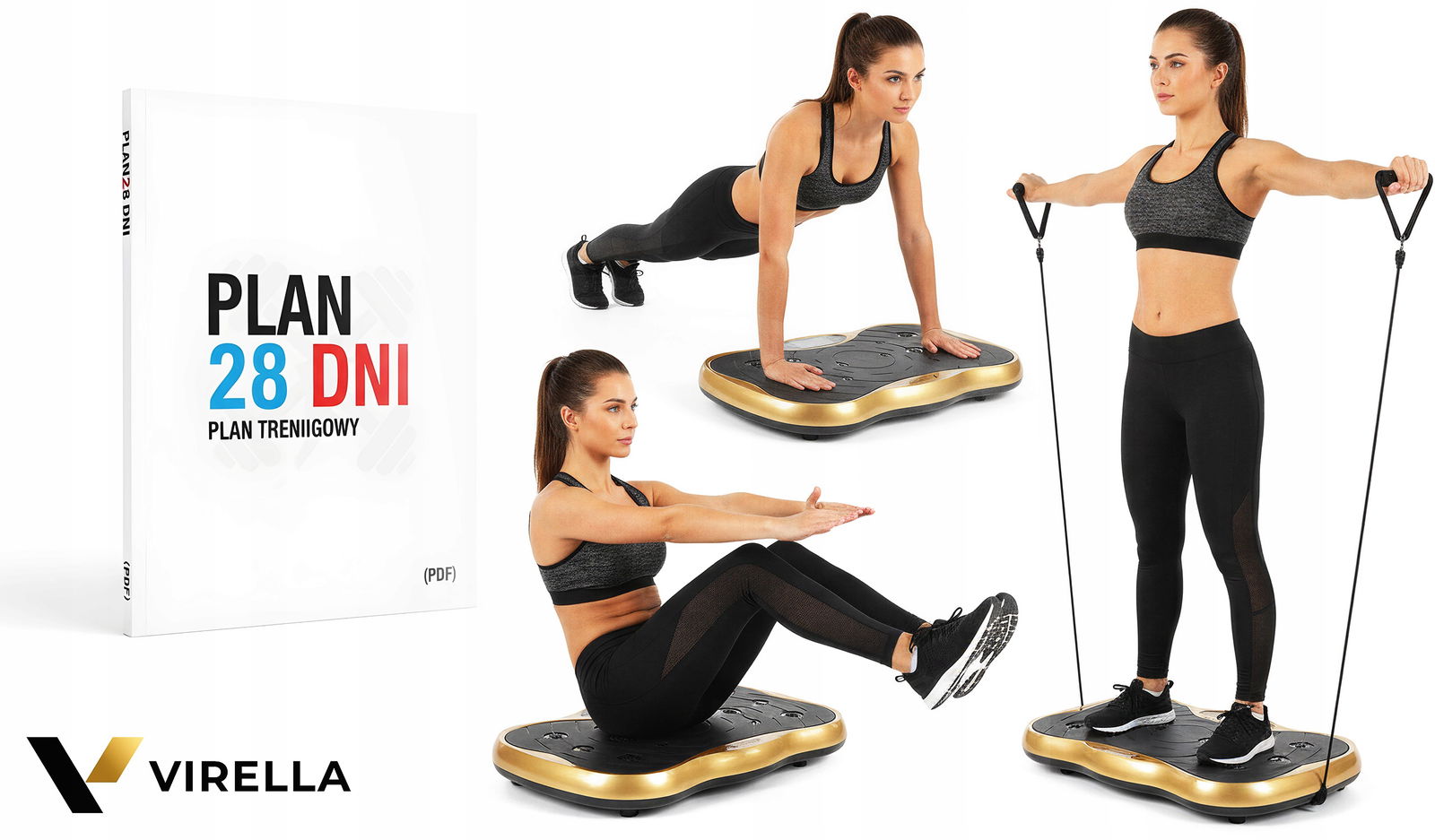 ✅ 13 500 wibracji/min | ✅ 5 programów + 99 prędkości | ✅ Amplituda 10 mm | ✅ Ekran dotykowy + pilot | ✅ Bluetooth + głośniki | ✅ Udźwig 180 kg | ✅ Antypoślizgowa, kompakt 53×31×12 cm | ✅ Taśmy oporowe w zestawie | ✅ Ebook „Plan 28 dni: jędrne ciało na platformie” (PDF po zakupie) | ✅ Marka VIRELLA – kolorowe opakowanie z logo