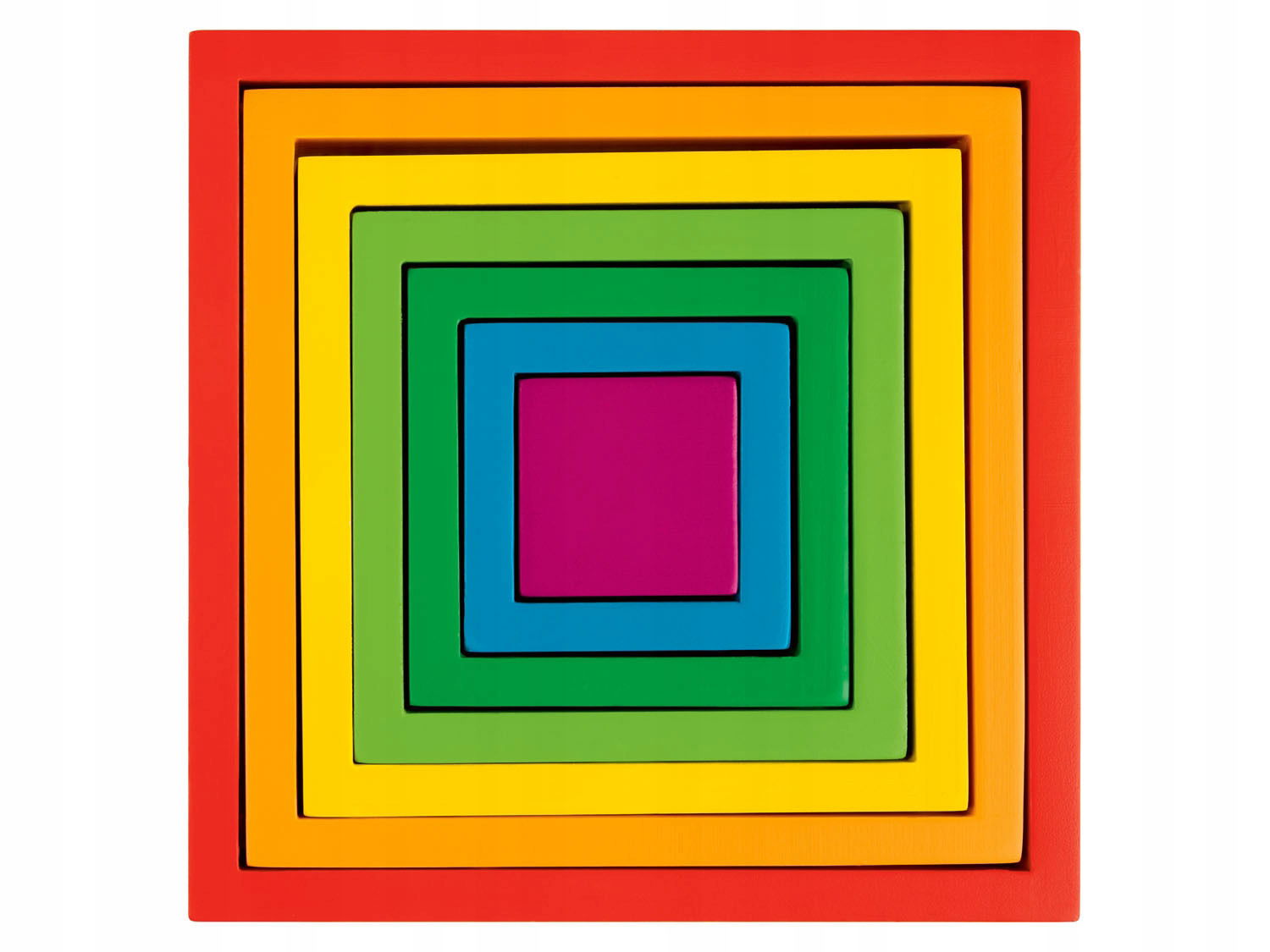 Drewniana układanka w kolorach tęczy Playtive to zabawka edukacyjna inspirowana metodą Montessori. Dzięki różnym kształtom i barwnym elementom wspiera rozwój dziecka poprzez zabawę angażującą wszystkie zmysły. Kolorowe łuki w formie kwadratu można układać jeden w drugi lub tworzyć kreatywne konstrukcje, co rozwija motorykę małą, spostrzegawczość i wyobraźnię przestrzenną.
