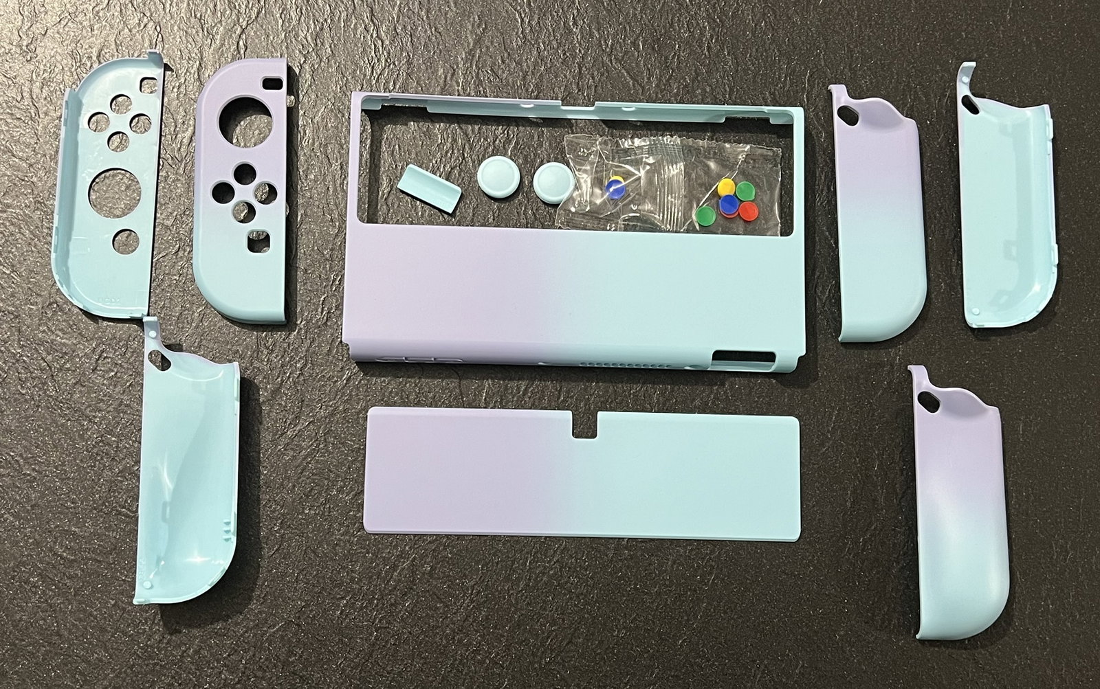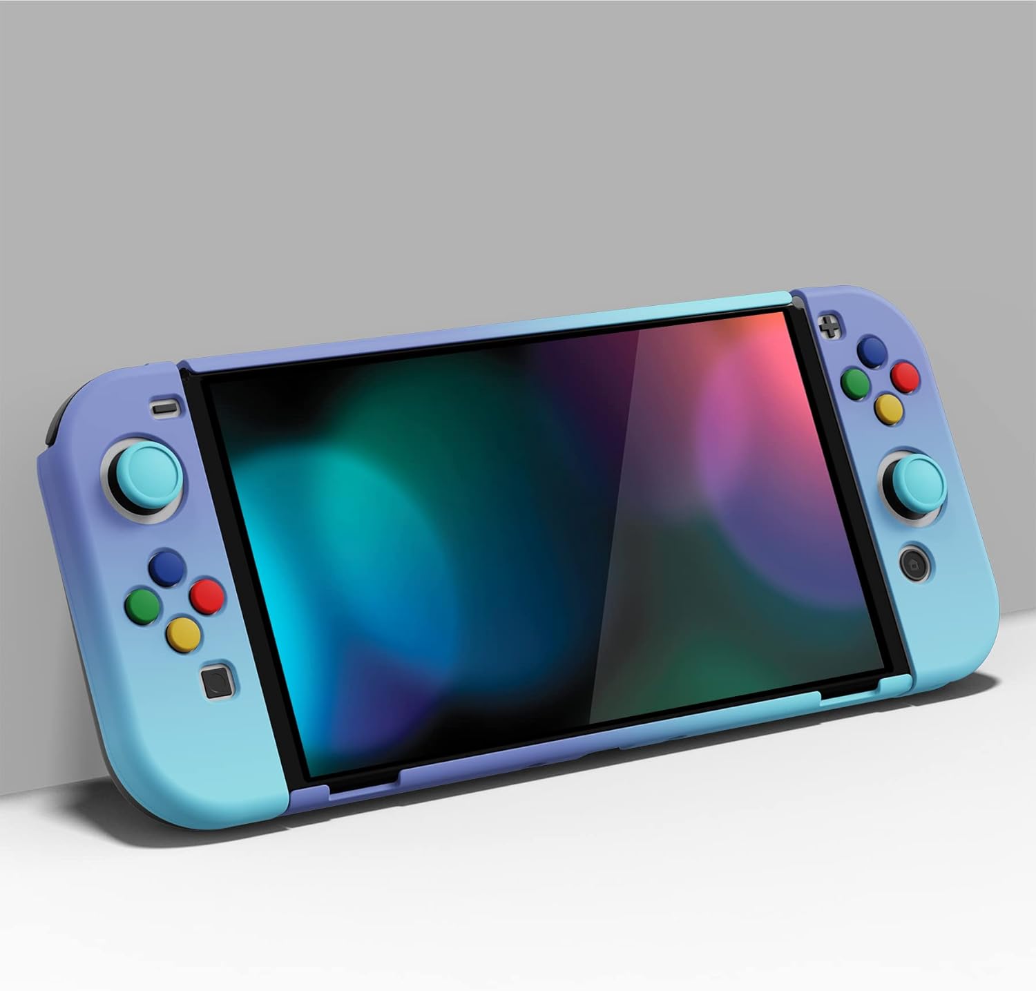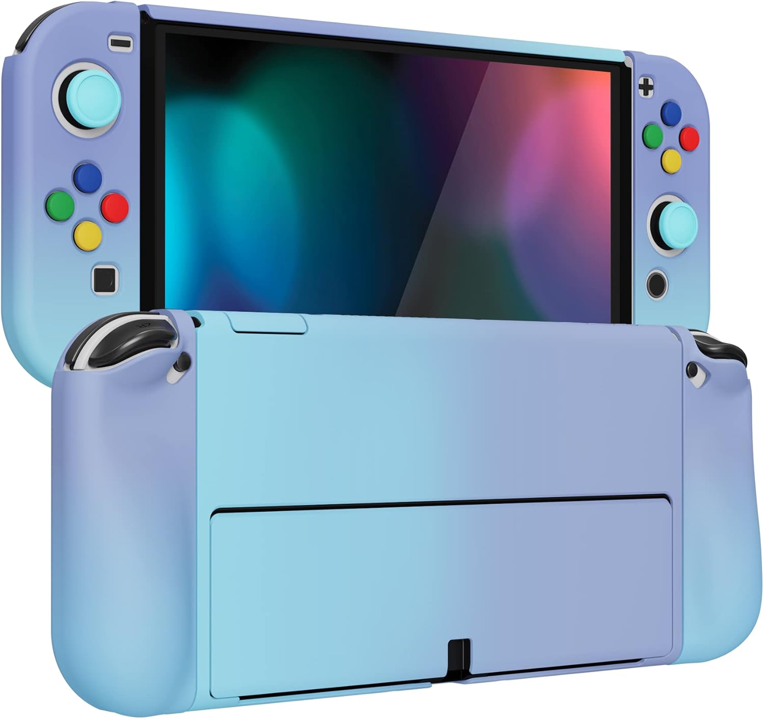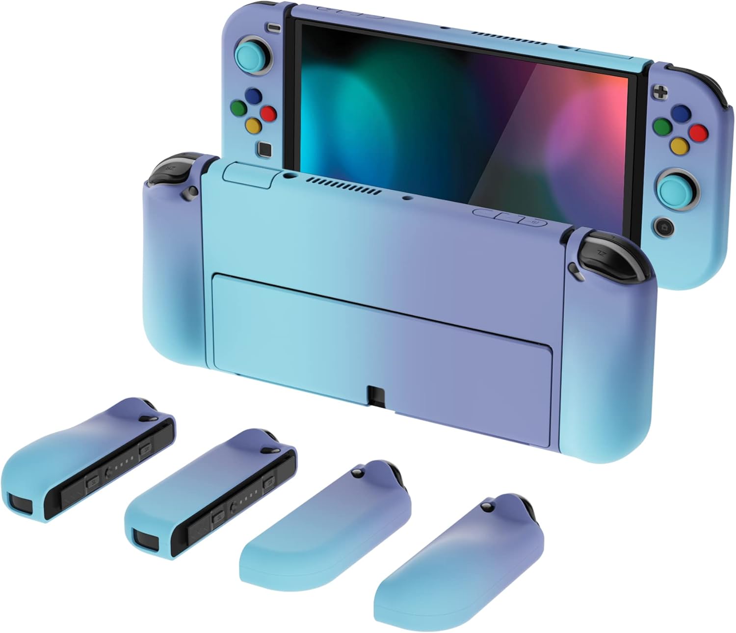 PlayVital Etui Ochronny do Nintendo Switch OLED,Case Hard Shell do Switch OLED,AlterGrips Dokowalna Protective Cover z Kciuka Caps&Caps Przycisków-Gradientowy Fioletowy Niebieski