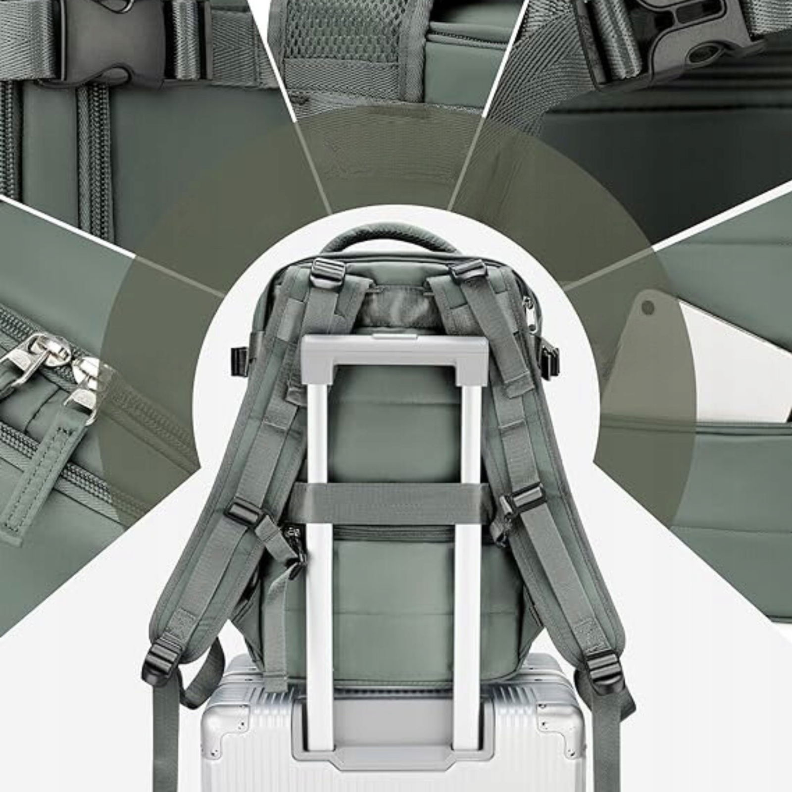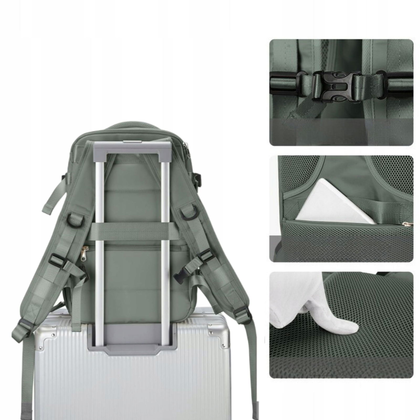 ✅Plecak ma pasek, który pozwala zaczepić go na rączkę walizki, co znacząco ułatwi Ci transport bagaży na lotnisku.