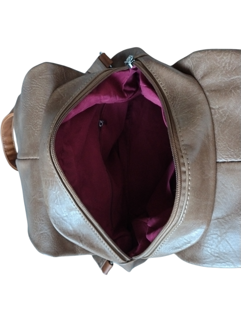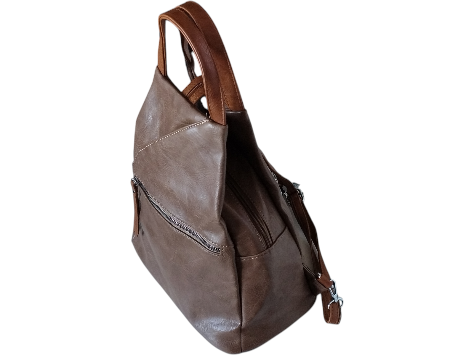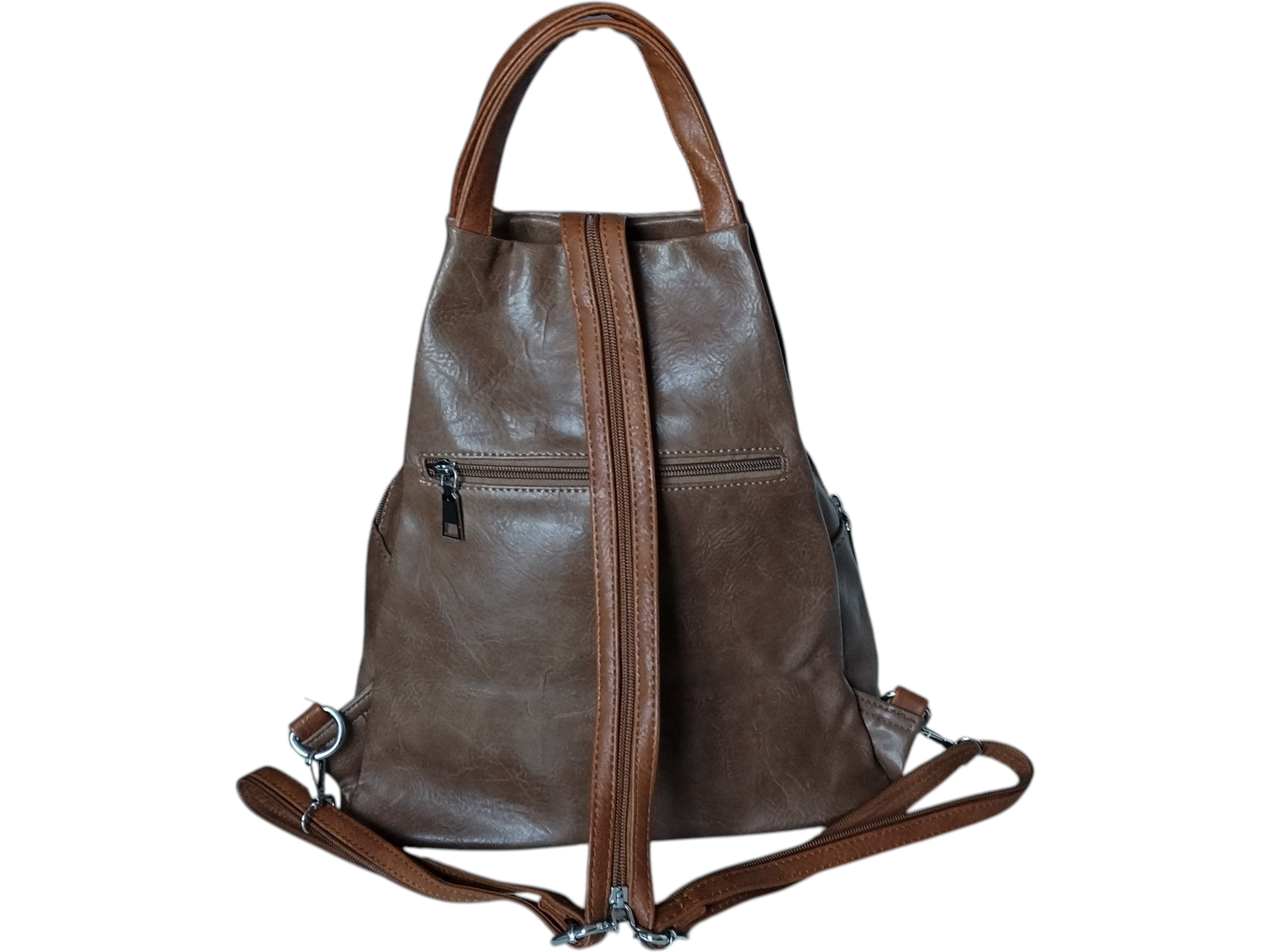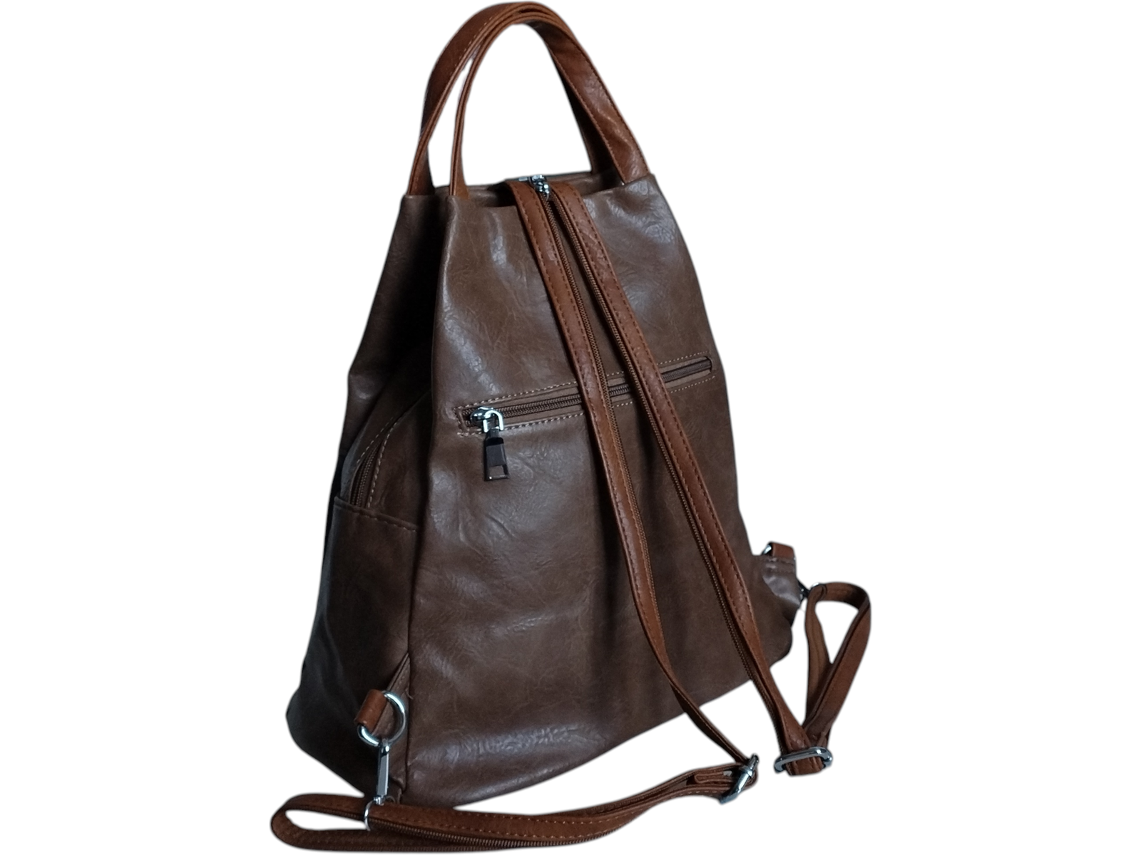 Plecak Damski Modny Worek na Ramię Skóra Ekologiczna 6 Kieszeni Ciemny Brąz