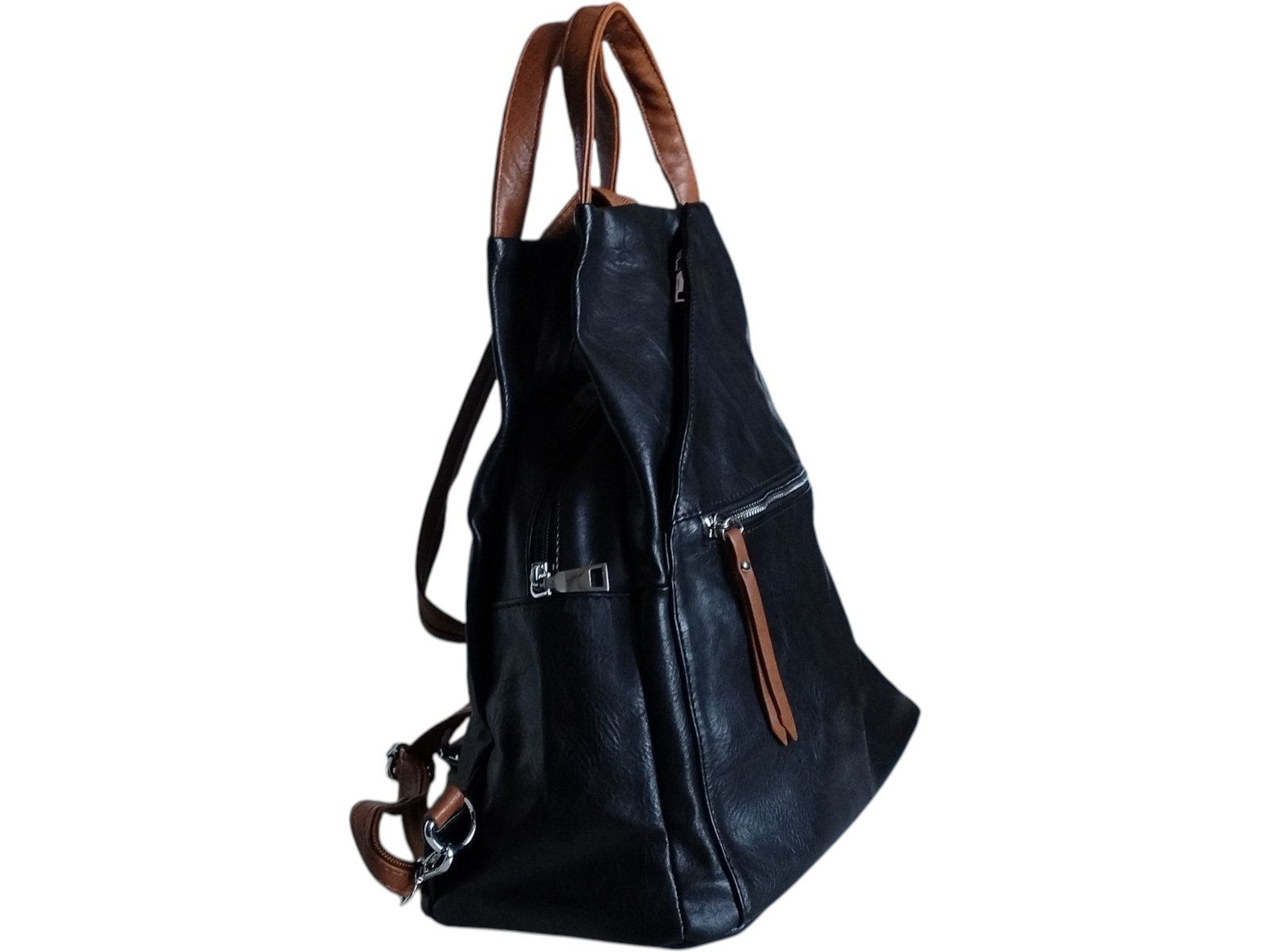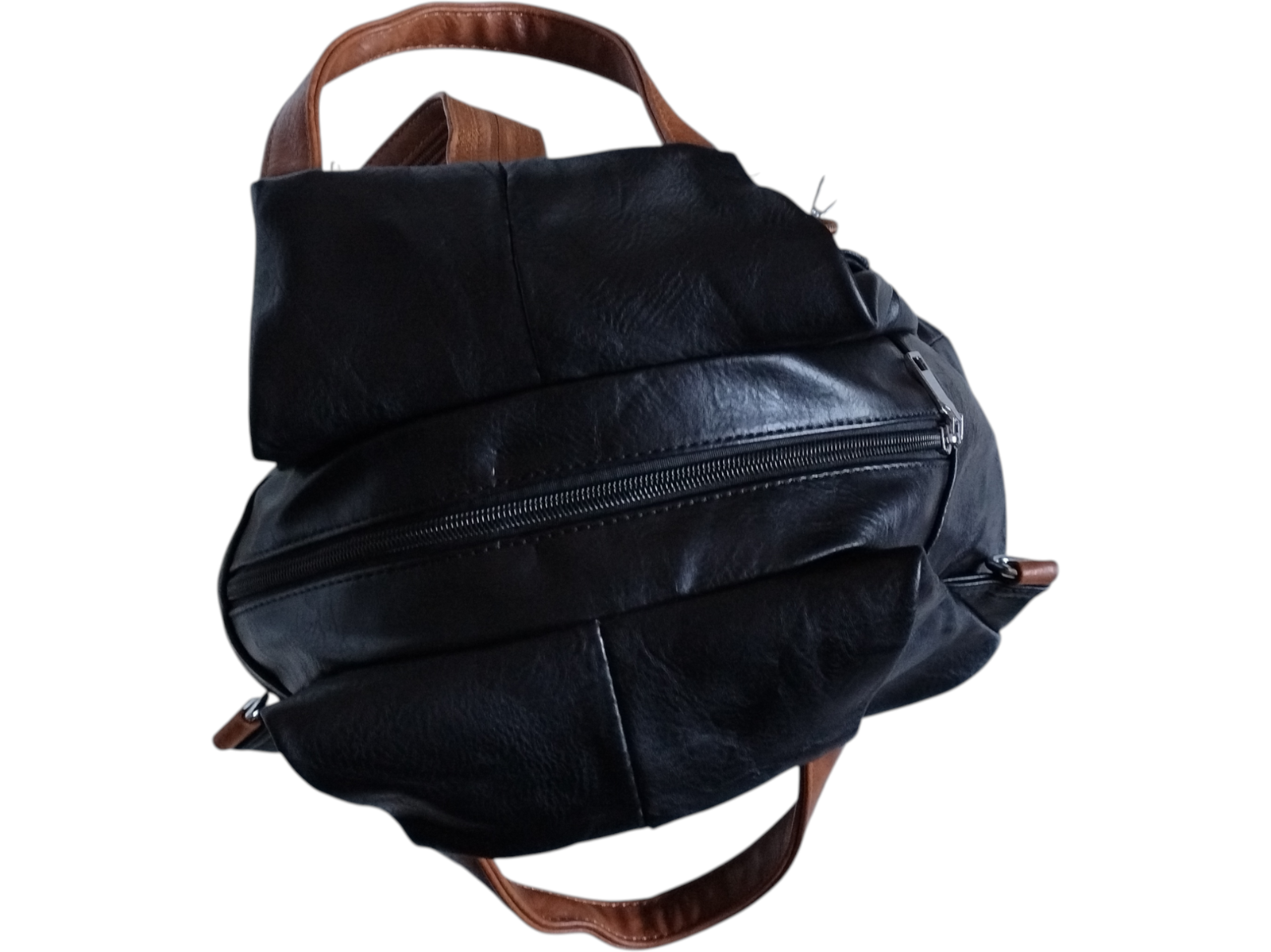Plecak Damski, Modny Worek Na Ramię, Skóra Ekologiczna 6 Kieszeni, Czarny