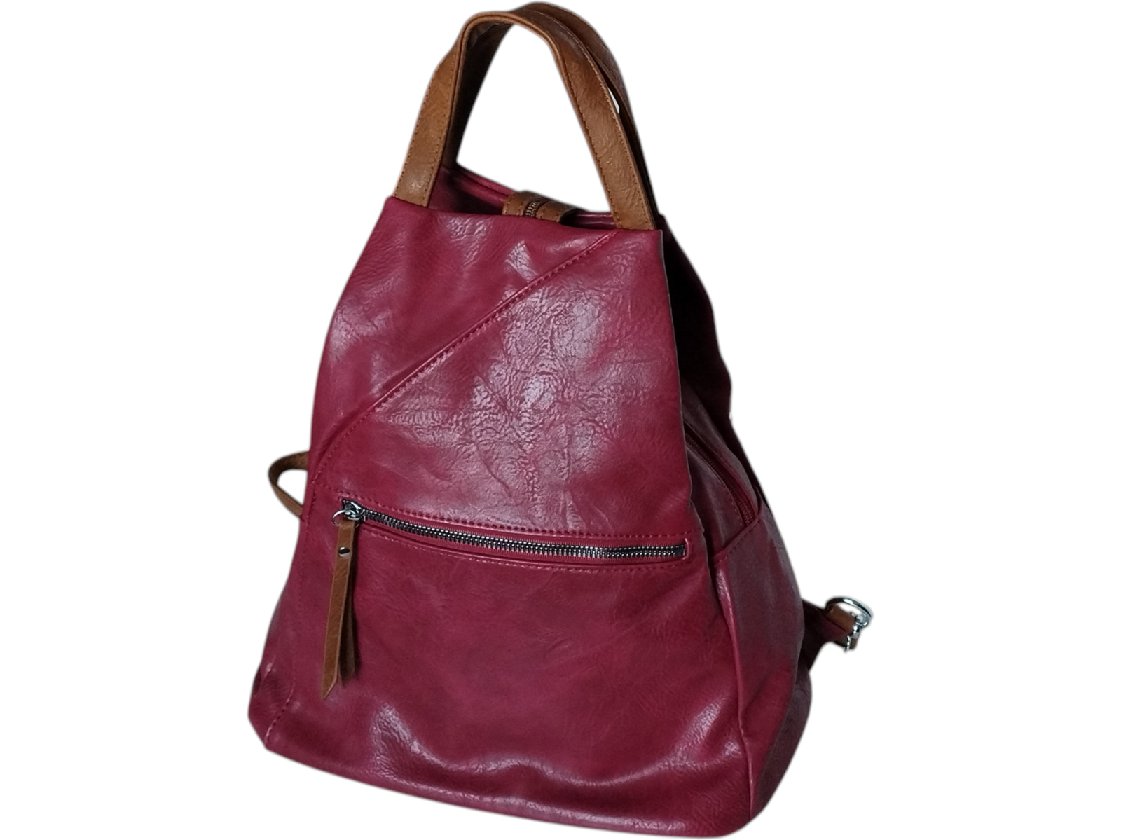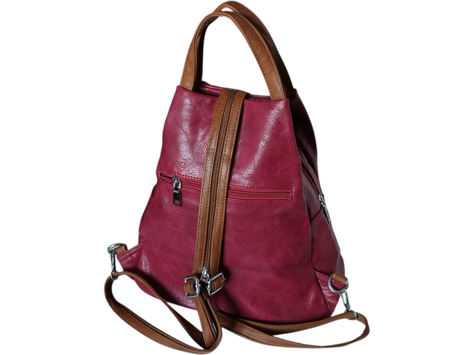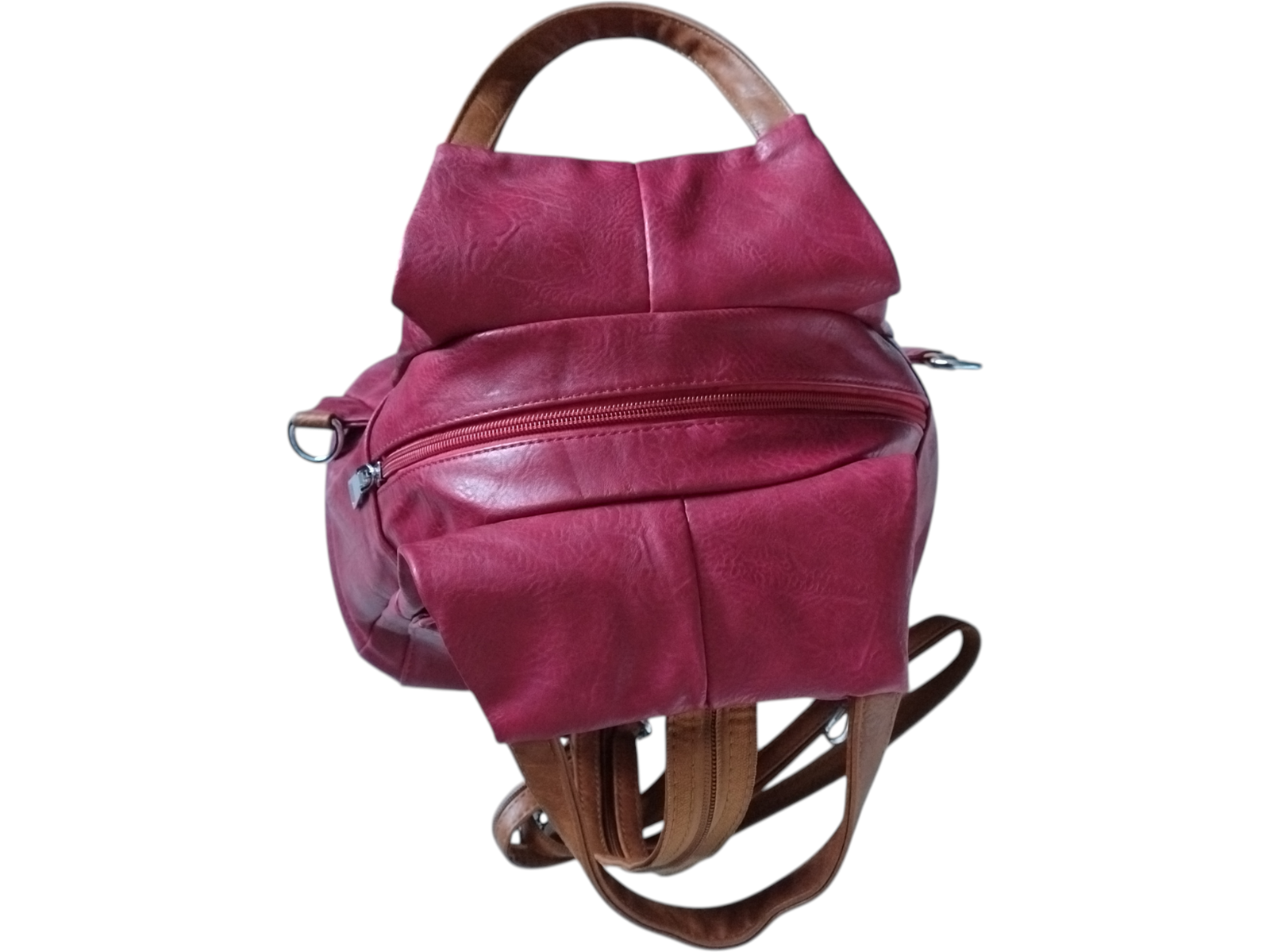 Plecak Damski, Modny Worek Na Ramię Skóra Ekologiczna, 6 Kieszeni, Czerwony