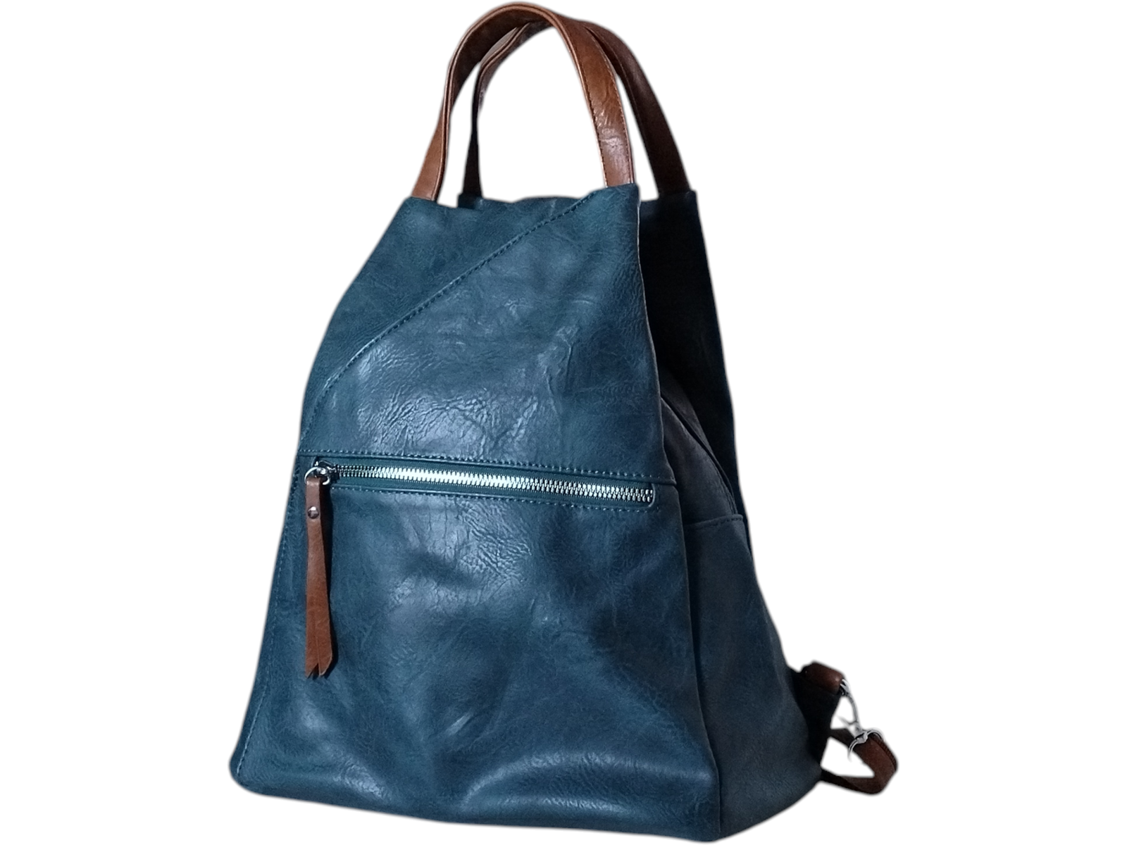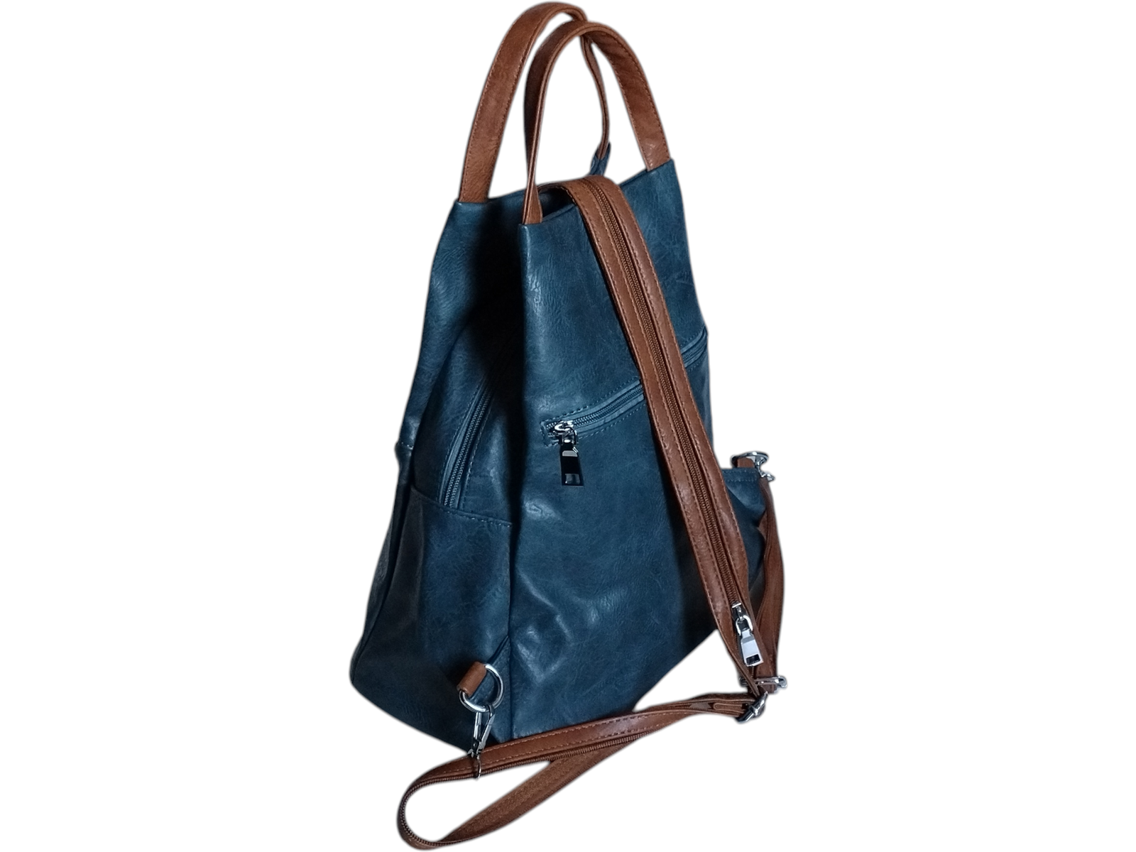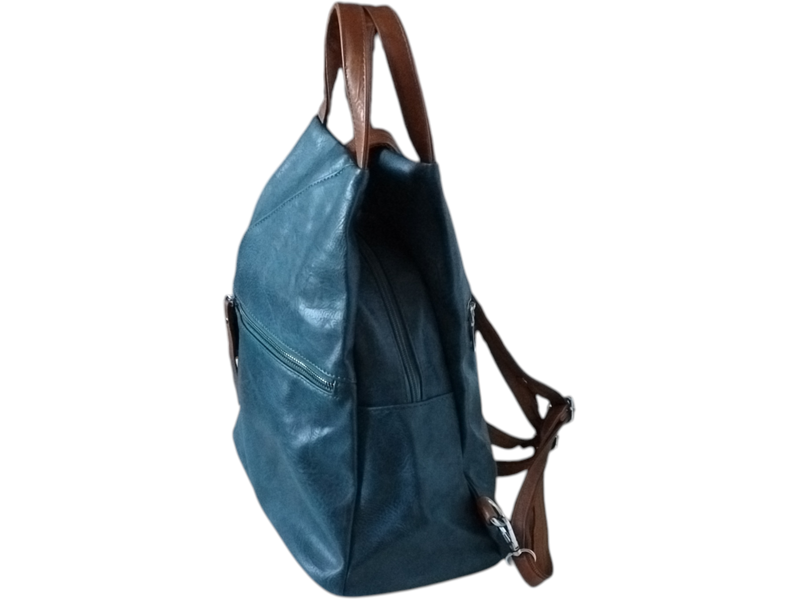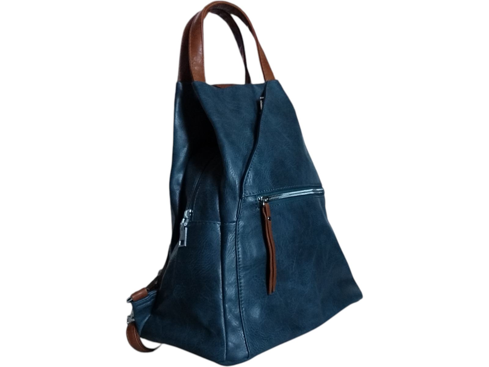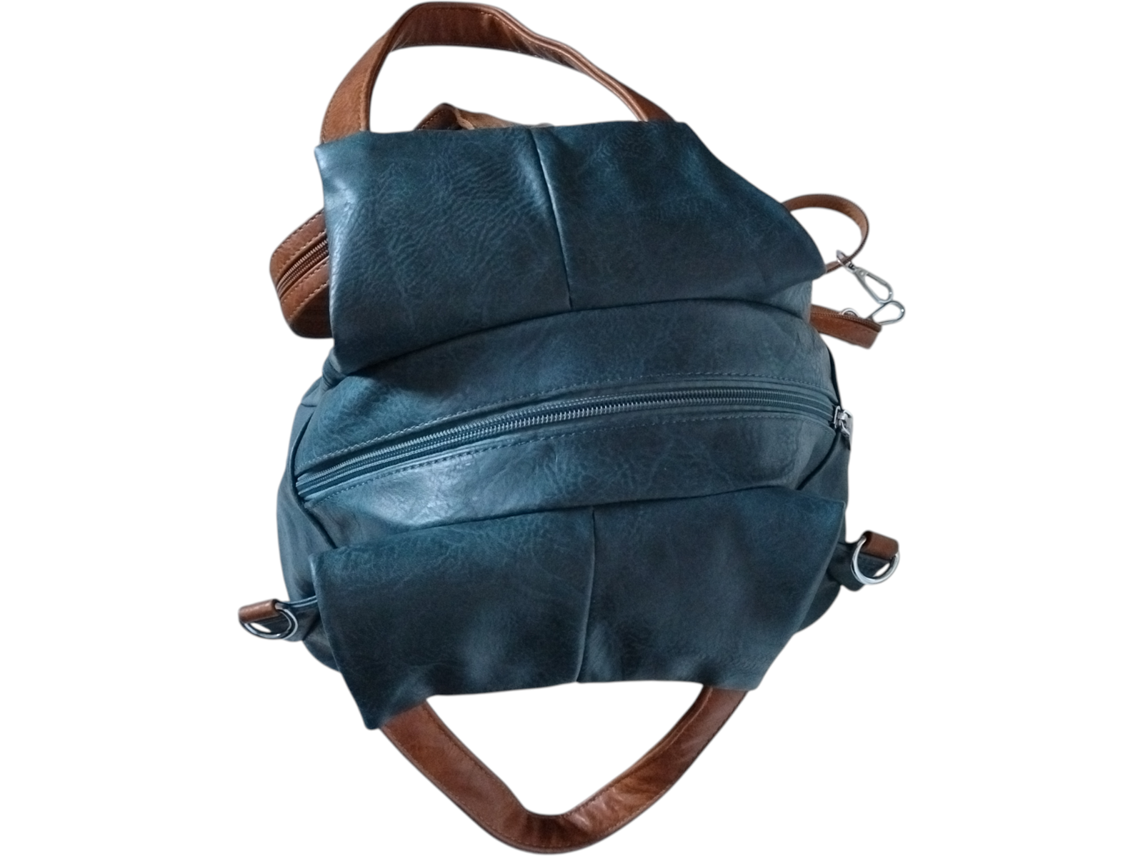 Plecak Damski, Modny Worek Na Ramię Skóra Ekologiczna, 6 Kieszeni, Niebieski